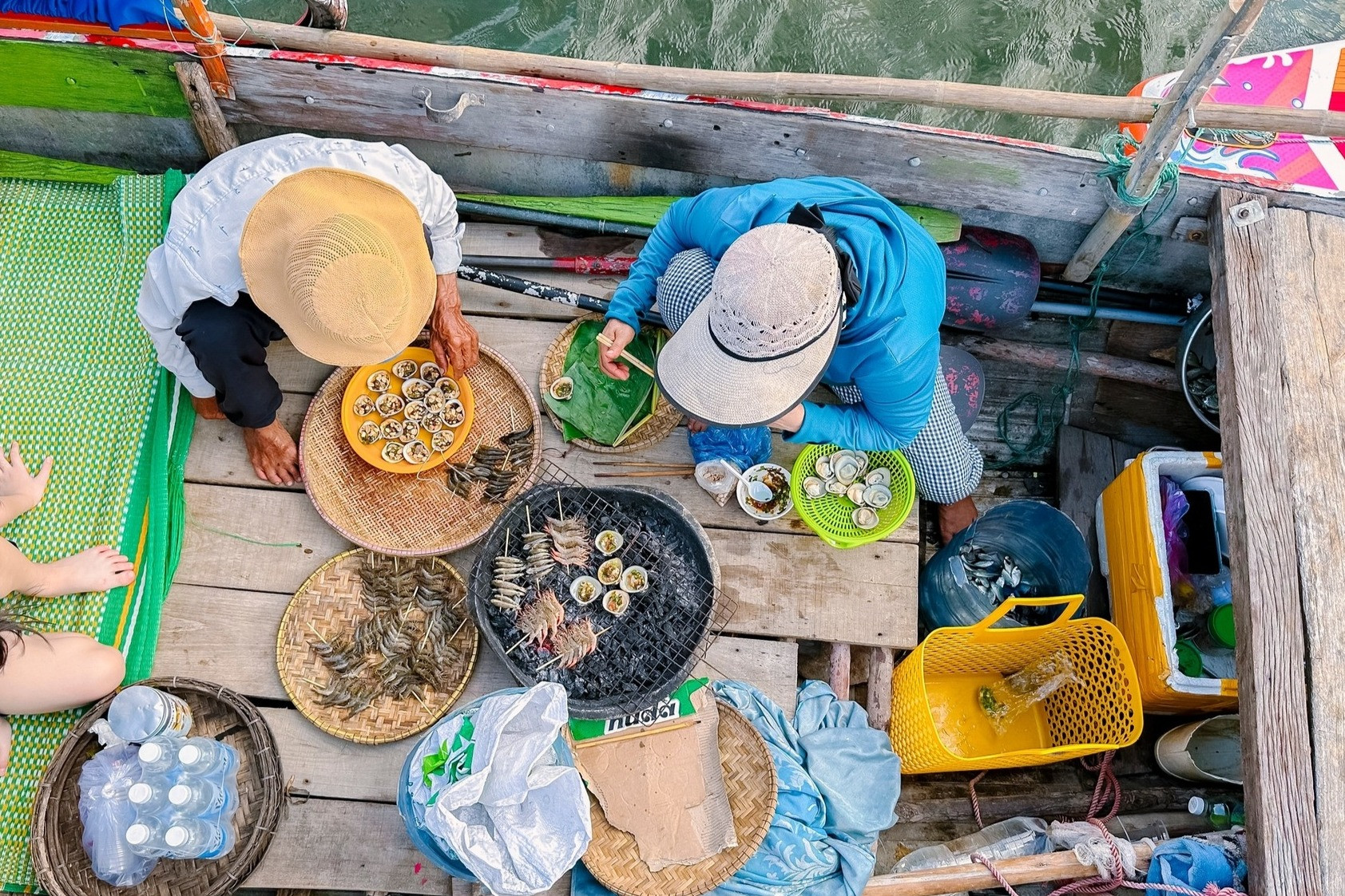 Nếu muốn kết hợp làm ngư dân và ngắm bình minh Đầm Chuồn, du khách nên bắt đầu hành trình từ 5h. Các loại hải sản tươi rói sẽ được hấp, nướng trực tiếp tại các nhà chồ giữa đầm.