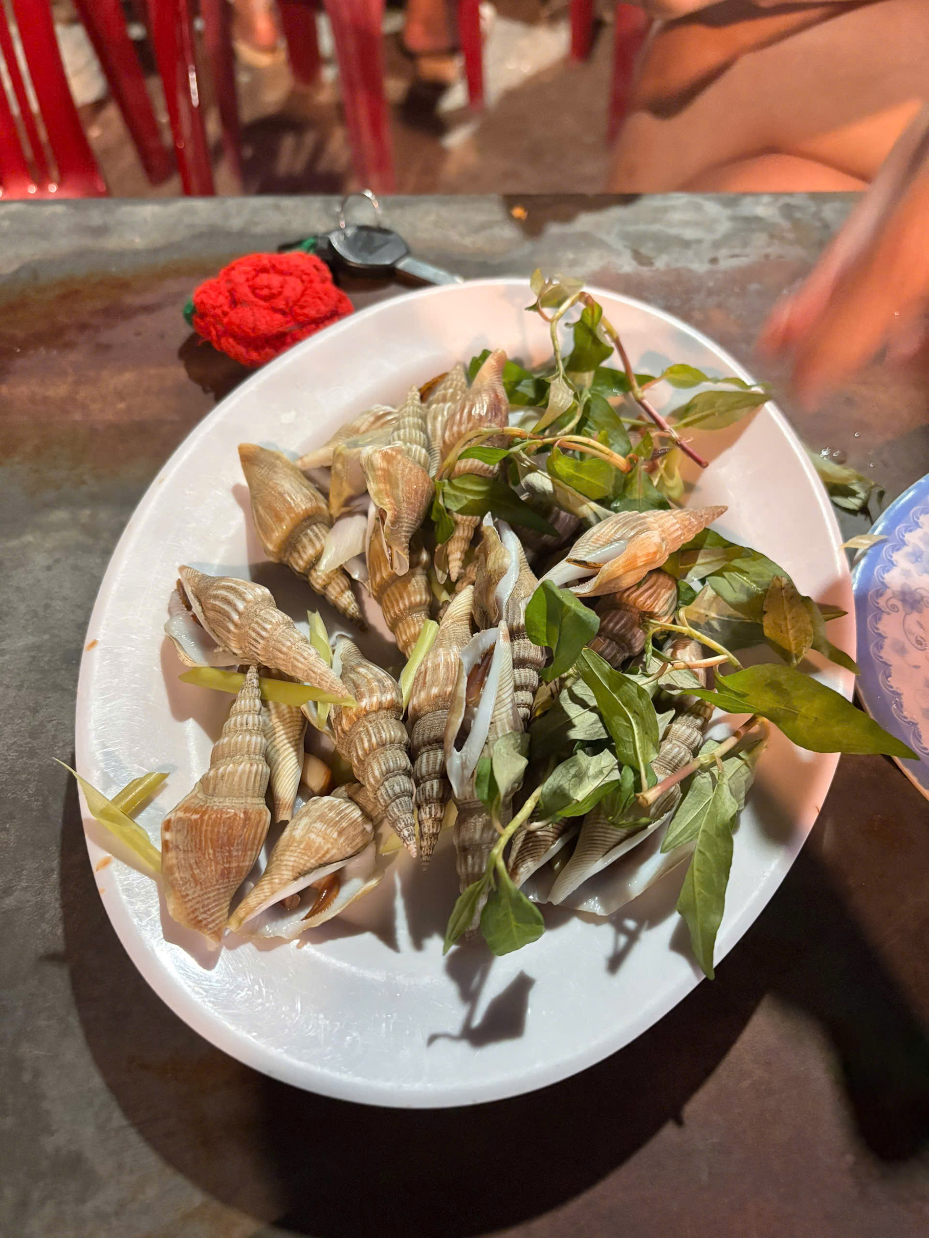 Trong 3 ngày trải nghiệm ở Dốc Lết, ngoài bánh căn mực, Quỳnh còn có cơ hội thưởng thức nhiều món ngon khác như bánh dây, chả ram hay các loại hải sản bản địa tươi ngon như sò lông, ốc, hàu, sò điệp, nhum…