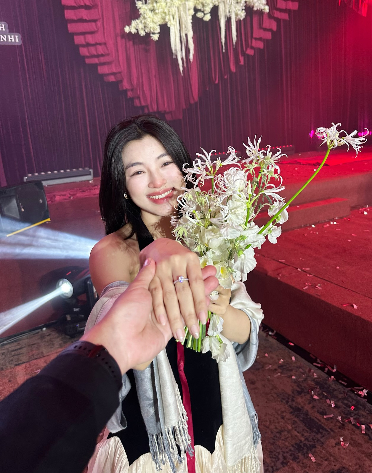 Anh rủ cô cùng đi đám cưới một người thân trong họ hàng. Khi buổi tiệc kết thúc, nhạc trưởng sinh năm 1997 bất ngờ trao hoa, nhẫn kim cương cùng lời cầu hôn ngọt ngào.