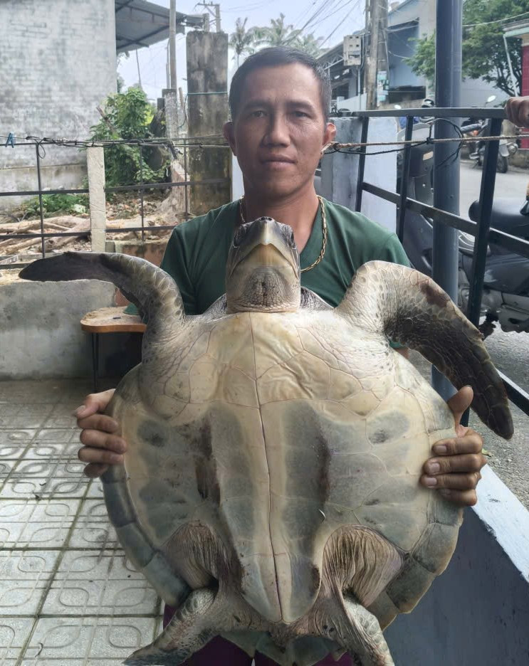 Trước đó, trong lúc đánh bắt tại vùng biển khối phố Tỉnh Thủy, ông Nguyễn Cao Giới (38 tuổi, trú phường Quảng Phú) phát hiện một con rùa biển mắc vào lưới. Nhận thấy đây là loài động vật hoang dã quý hiếm, ông đã báo cho cơ quan chức năng.