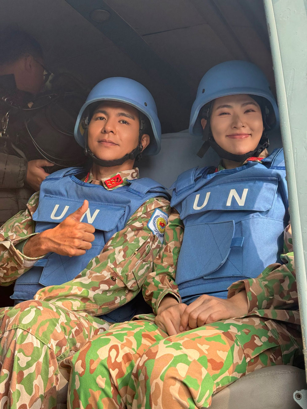 Minh Trang chia sẻ ảnh hậu trường một cảnh quay với Steven Nguyễn. Cặp đôi quân nhân đang nhận sự quan tâm đặc biệt của khán giả trên màn ảnh nhỏ.