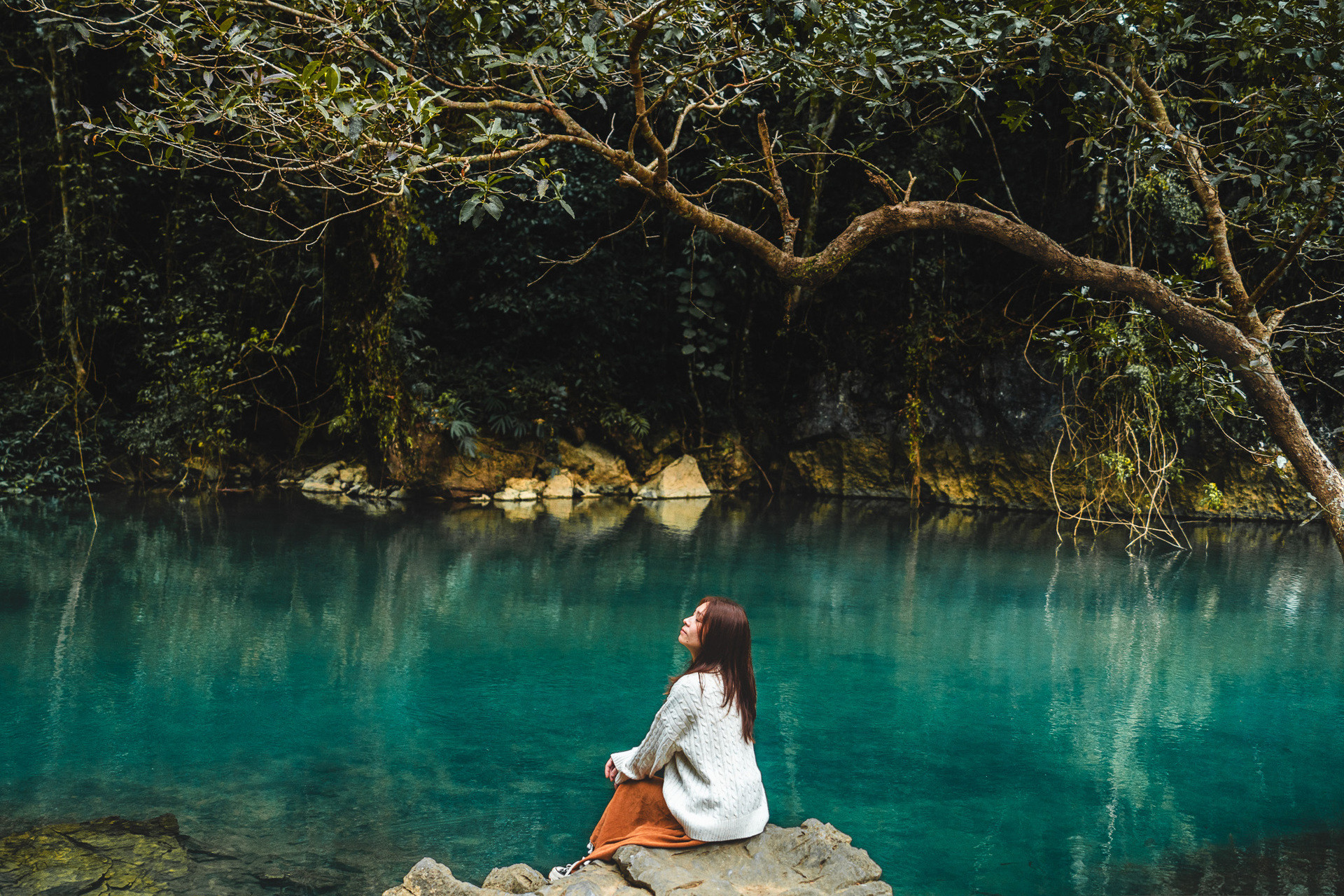 Theo anh Nhật, vào mùa đông, con suối vẫn rất đẹp, mang vẻ tĩnh lặng, bình yên giữa cánh rừng nguyên sinh.