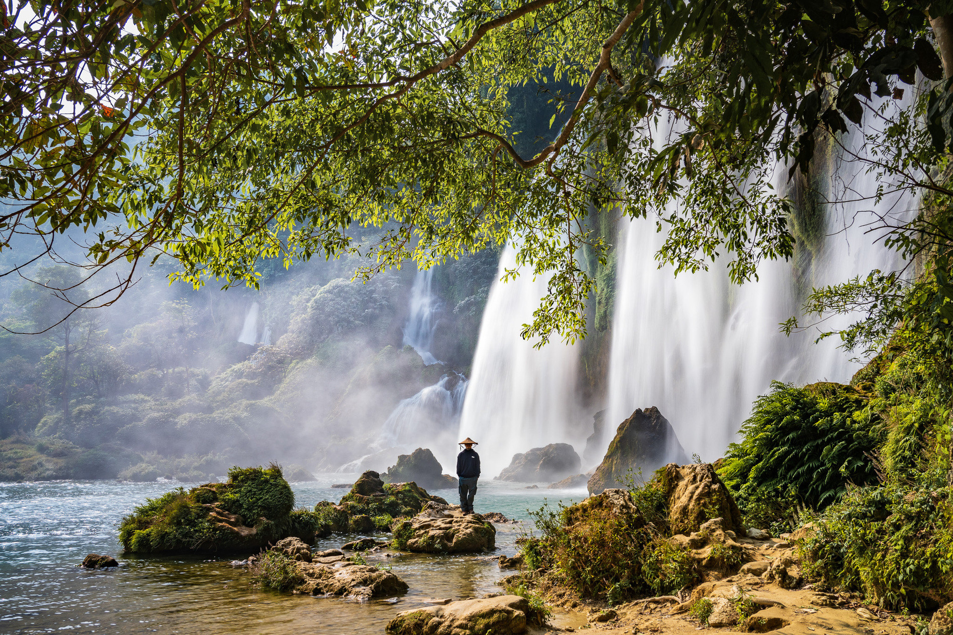 Thác Bản Giốc đẹp mắt, nên thơ với bầu không khí mát mẻ, trong lành của cỏ xanh và rừng nguyên sinh đa dạng