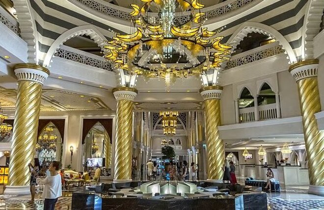 Không gian bên trong khách sạn 5 sao Jumeirah Zabeel Saray, khách được hướng dẫn vào các khu vực có mái che, tránh xa cửa sổ. Ảnh: DM
