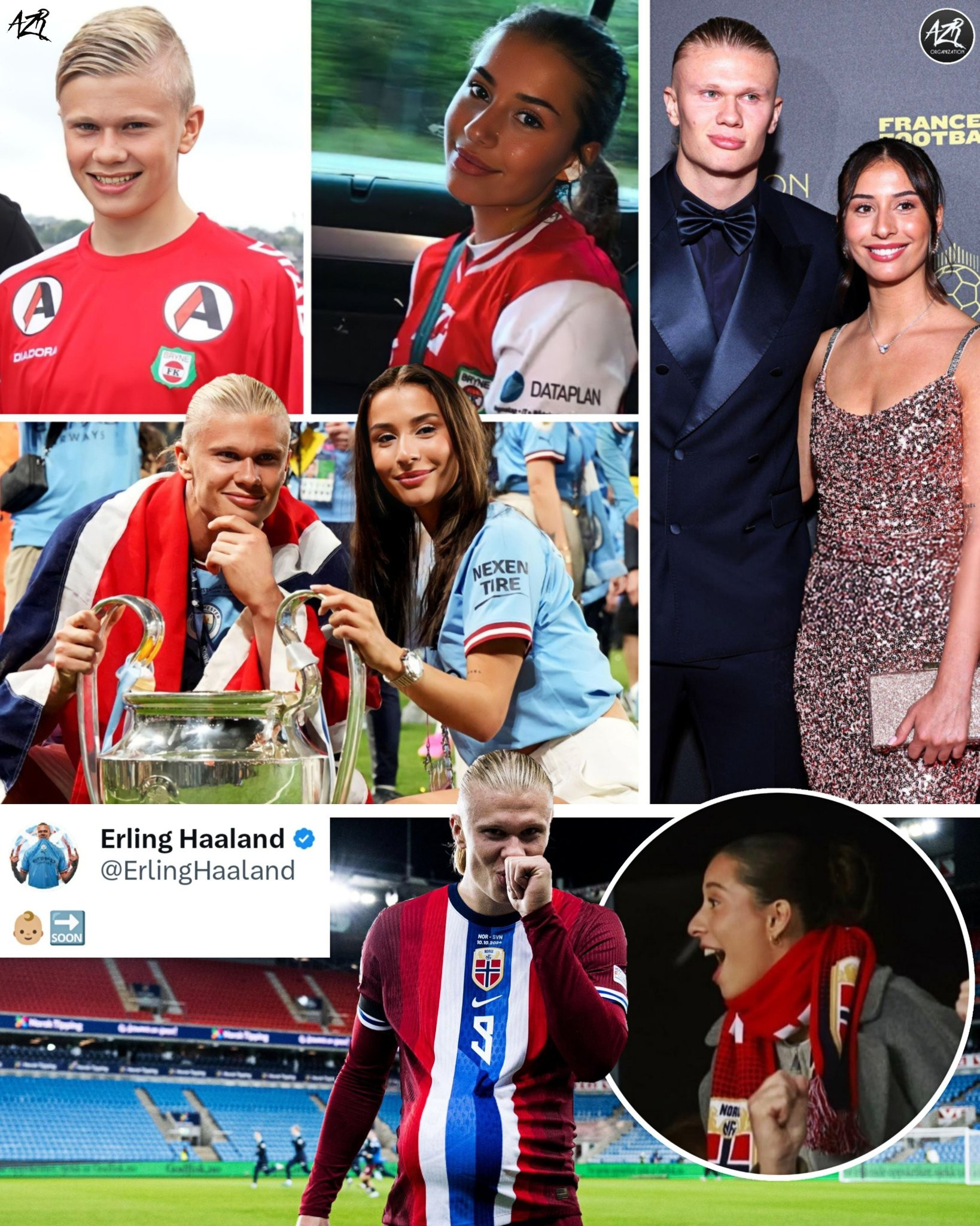 Haaland có chuyện tình đẹp với bạn gái kém 4 tuổi và vào cuối 2024 đã đón con trai đầu lòng. Ảnh: X AZR