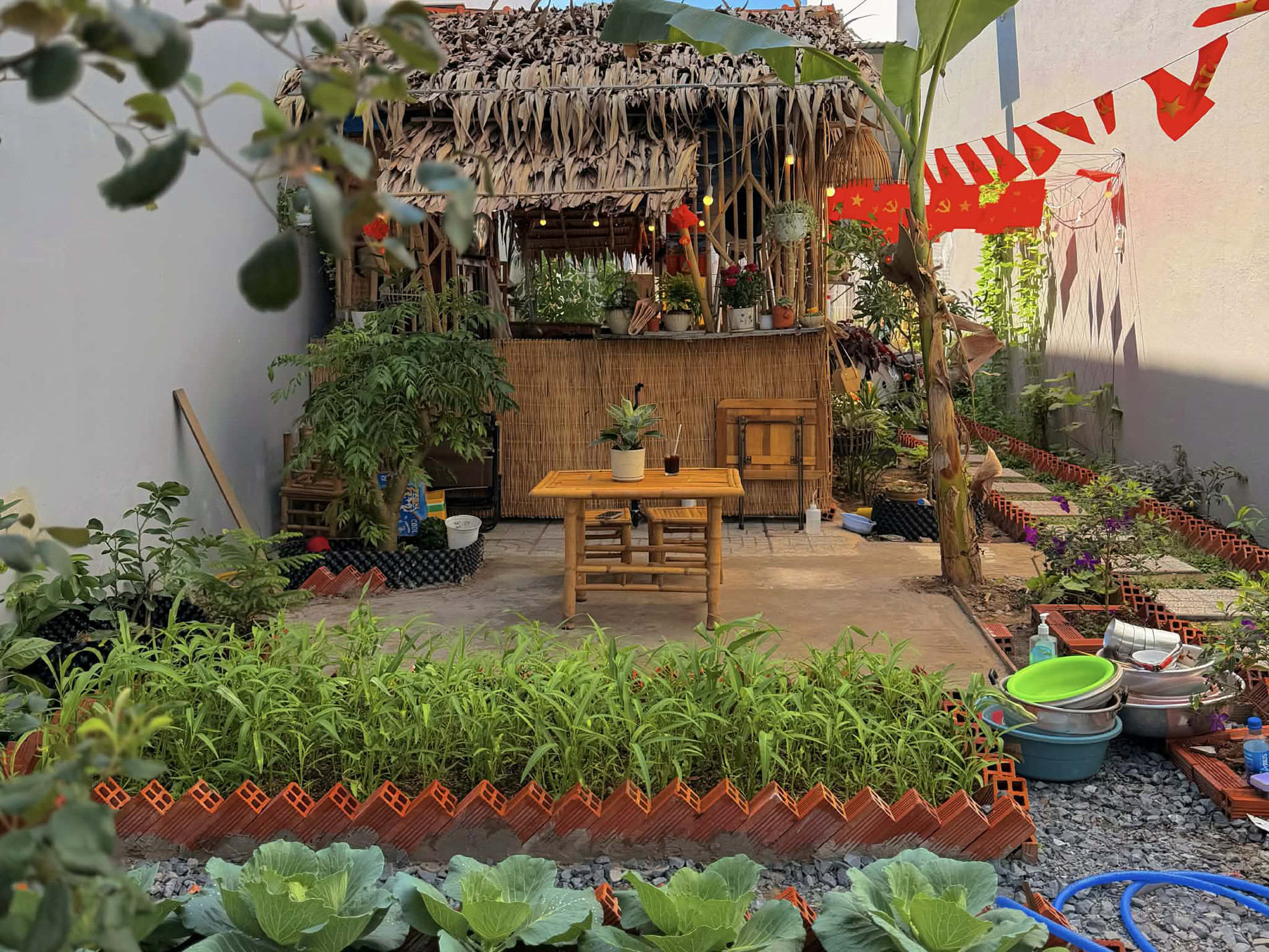 Căn chòi lá và khoảng sân vườn giữa lòng phố ở Cần Thơ được Trung và Duy tự tay gây dựng cách đây vài tháng