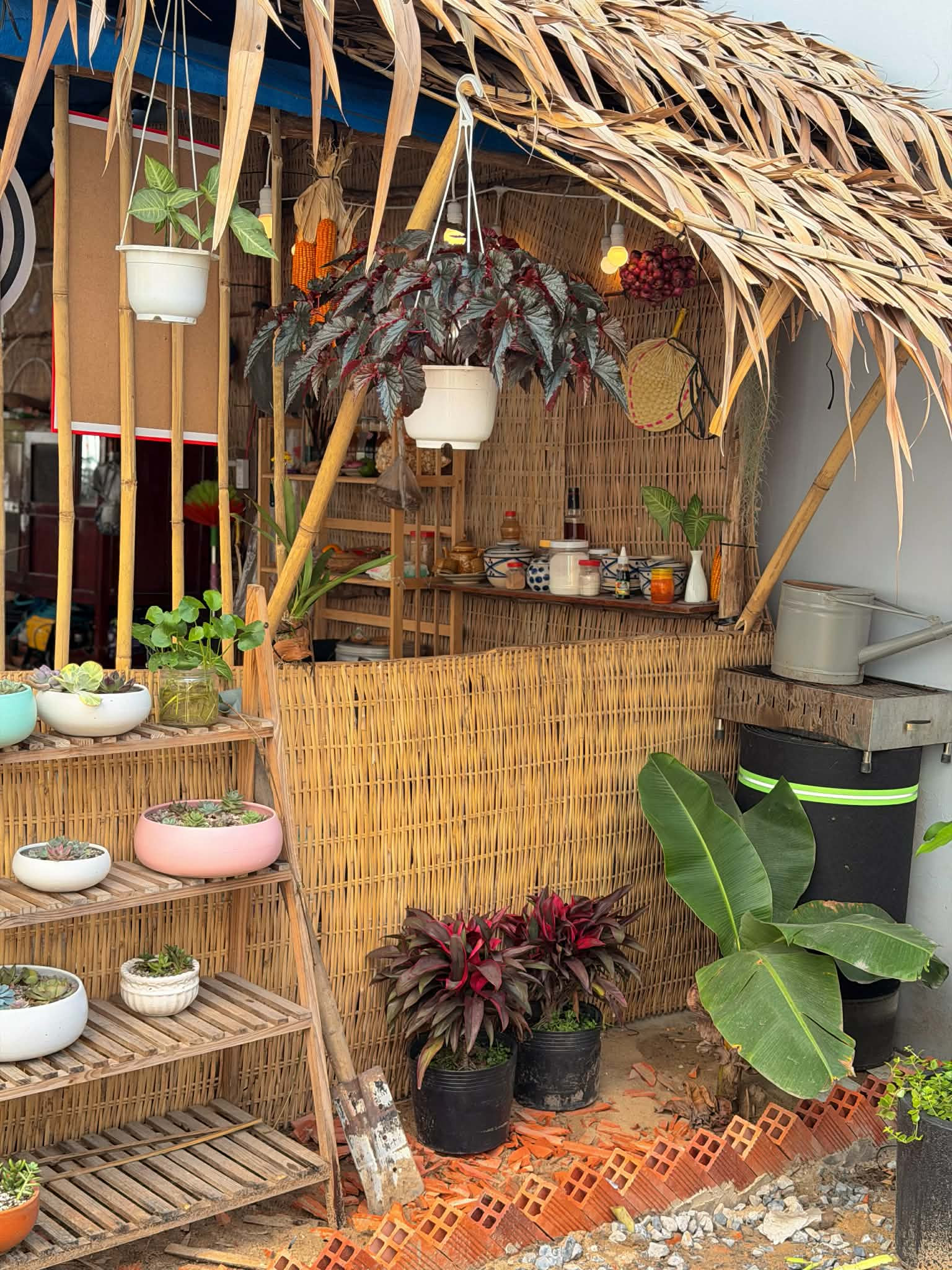 Chòi lá được sử dụng làm thành gian bếp nấu ăn mang đậm phong cách làng quê