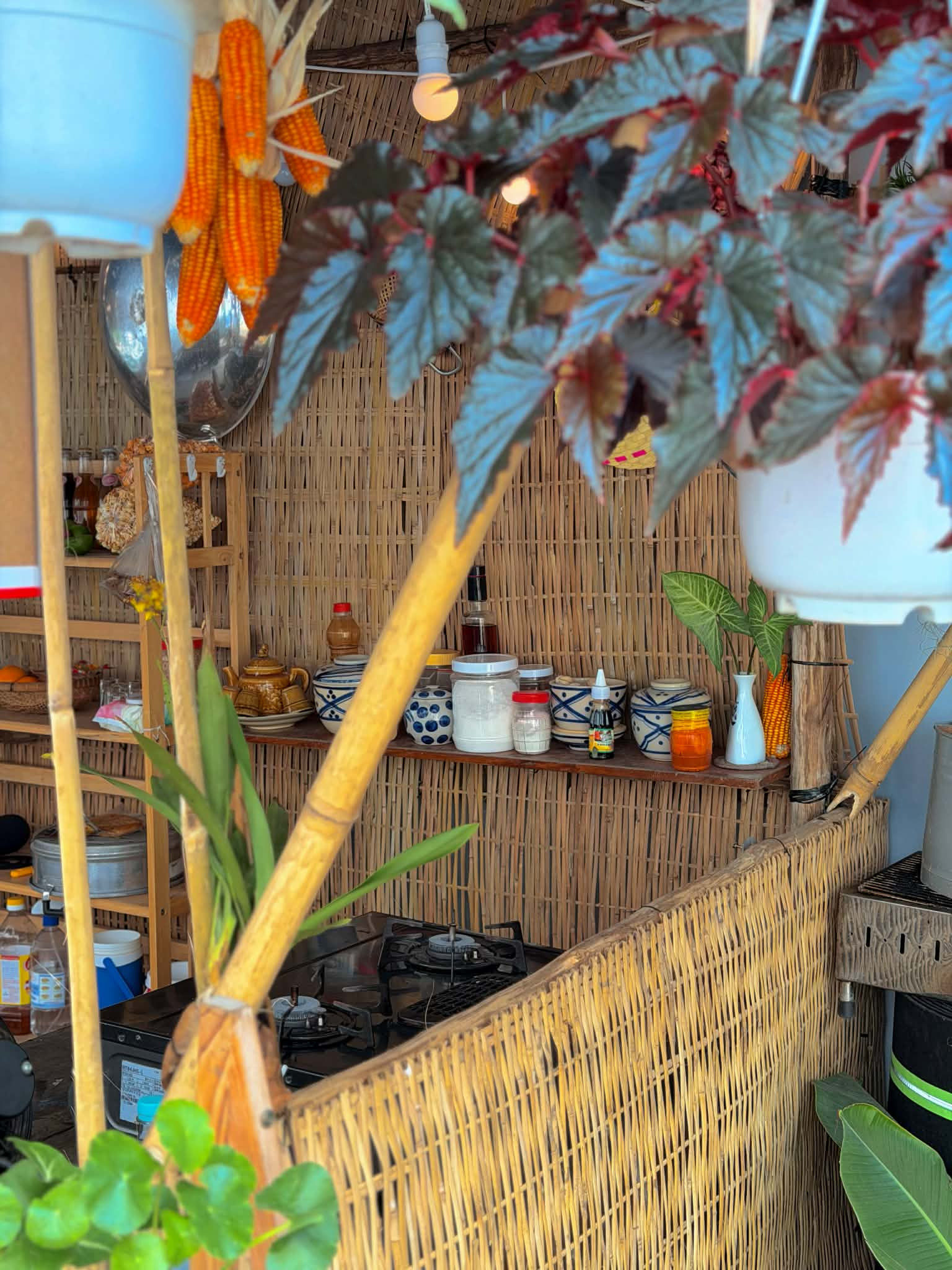 Mình cũng dựng thêm một cái chòi nhỏ, vừa làm góc nấu ăn, vừa tạo khung cảnh dân dã, bình dị như ở quê để xoa dịu nỗi nhớ nhà”, Trung chia sẻ.