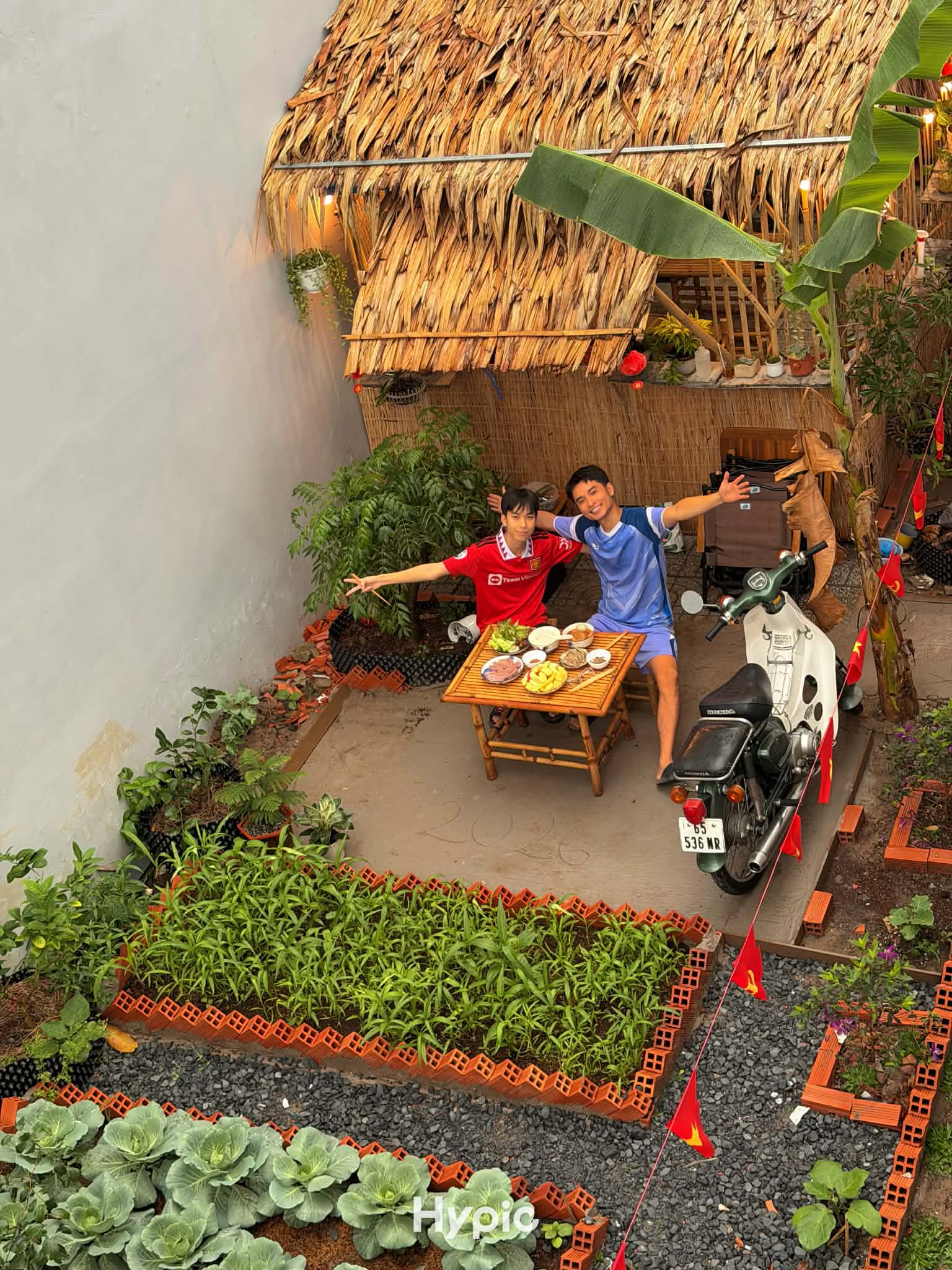 Khoảng sân vườn và căn chòi nhỏ được thiết kế chỉn chu, đẹp mắt của hai chàng trai trẻ ở thành phố Cần Thơ khiến nhiều cư dân xung quanh trầm trồ, háo hức tới tham quan.