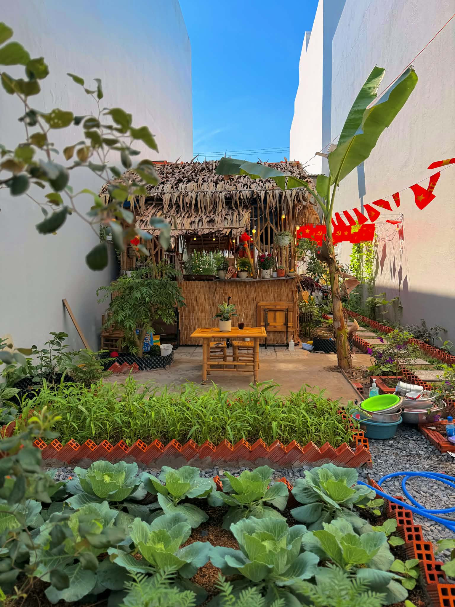 Căn chòi lá và góc vườn được hoàn thiện sau 3 tháng với chi phí khoảng 20 triệu đồng