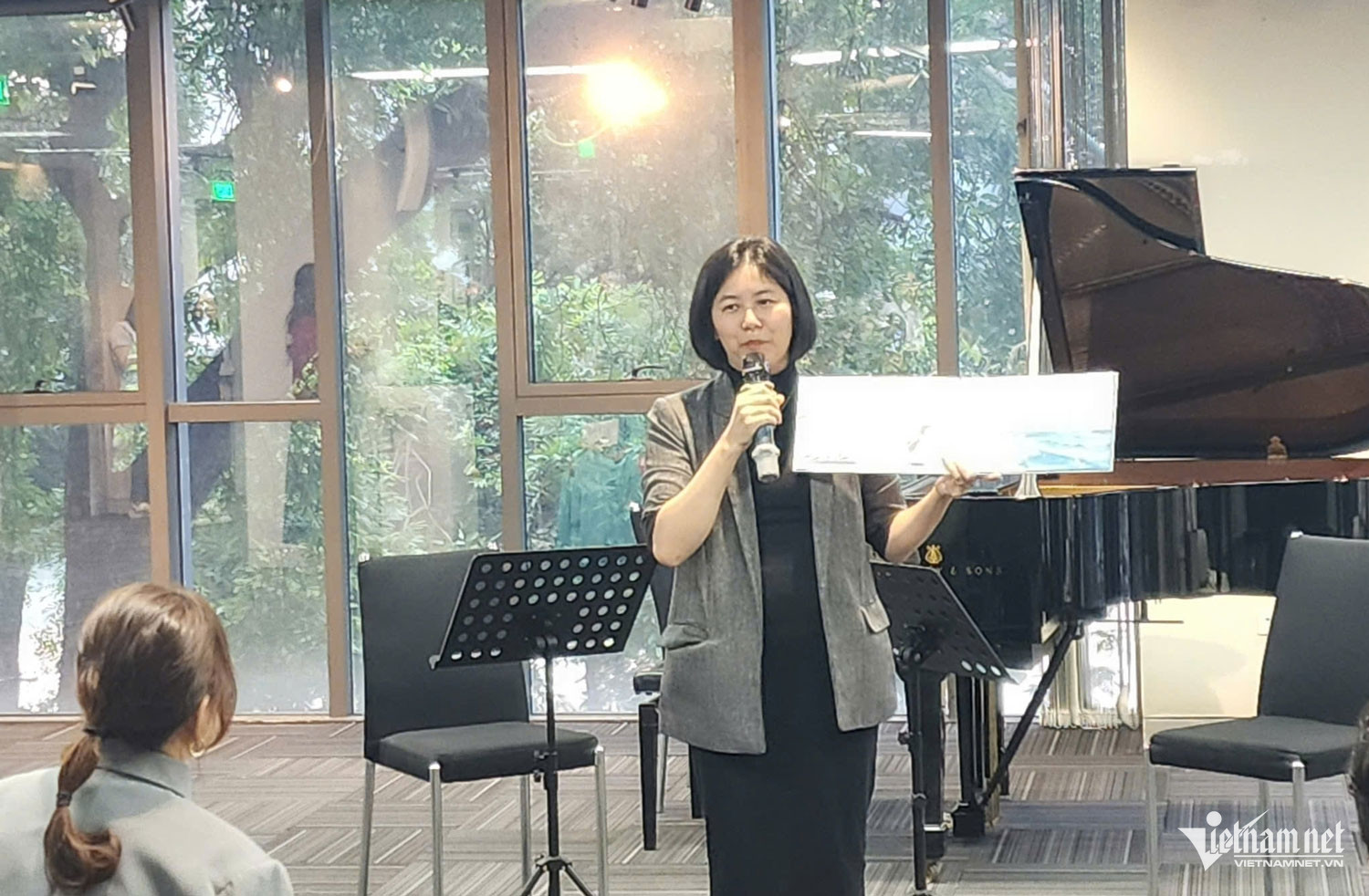Tiếp đó, giám tuyển Phan Đỗ Phúc và các nghệ sĩ Dàn nhạc Giao hưởng Trẻ Việt Nam (VYMI) trình diễn những biến tấu âm nhạc dựa trên một ý tưởng giai điệu đơn giản, qua đó phản chiếu cách Suzy Lee khai triển một đường nét hay chủ đề trong sách: lặp lại, mở rộng, biến hóa để tạo nên thế giới đa tầng. Không cần lời, chỉ nhịp, hình và khoảng trắng, âm nhạc và sách tranh gặp nhau ở tinh thần tối giản mà giàu chiều sâu cảm thụ.