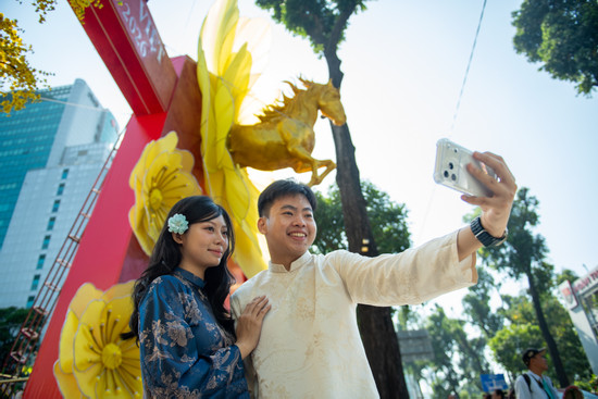 Lễ hội Tết Việt tại Nhà văn hóa Thanh niên TPHCM “gây sốt” ngày xuân với 6 linh vật ngựa vàng khổng lồ, nổi bật với chú ngựa “bay” ra từ hoa mai.