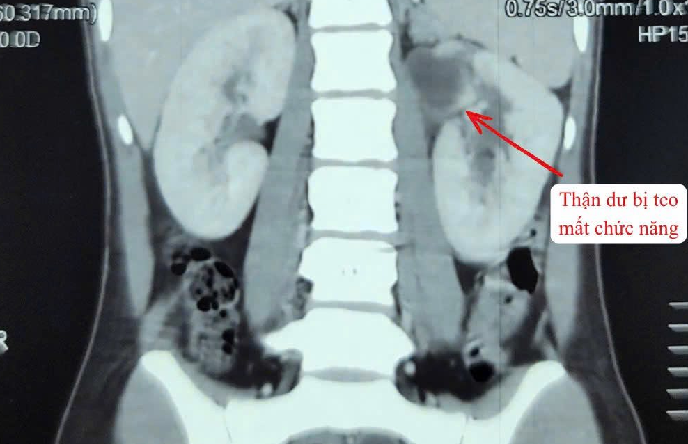 Người bệnh nhập viện trong tình trạng sốt cao, đau vùng hông trái. Qua thăm khám lâm sàng và thực hiện các xét nghiệm cận lâm sàng, các bác sĩ chẩn đoán bệnh nhân mắc dị tật thận - niệu quản đôi bên trái (tổng 3 thận). Trong đó, một thận đã mất chức năng, niệu quản giãn lớn bất thường, chứa nhiều mủ gây nhiễm trùng nặng.