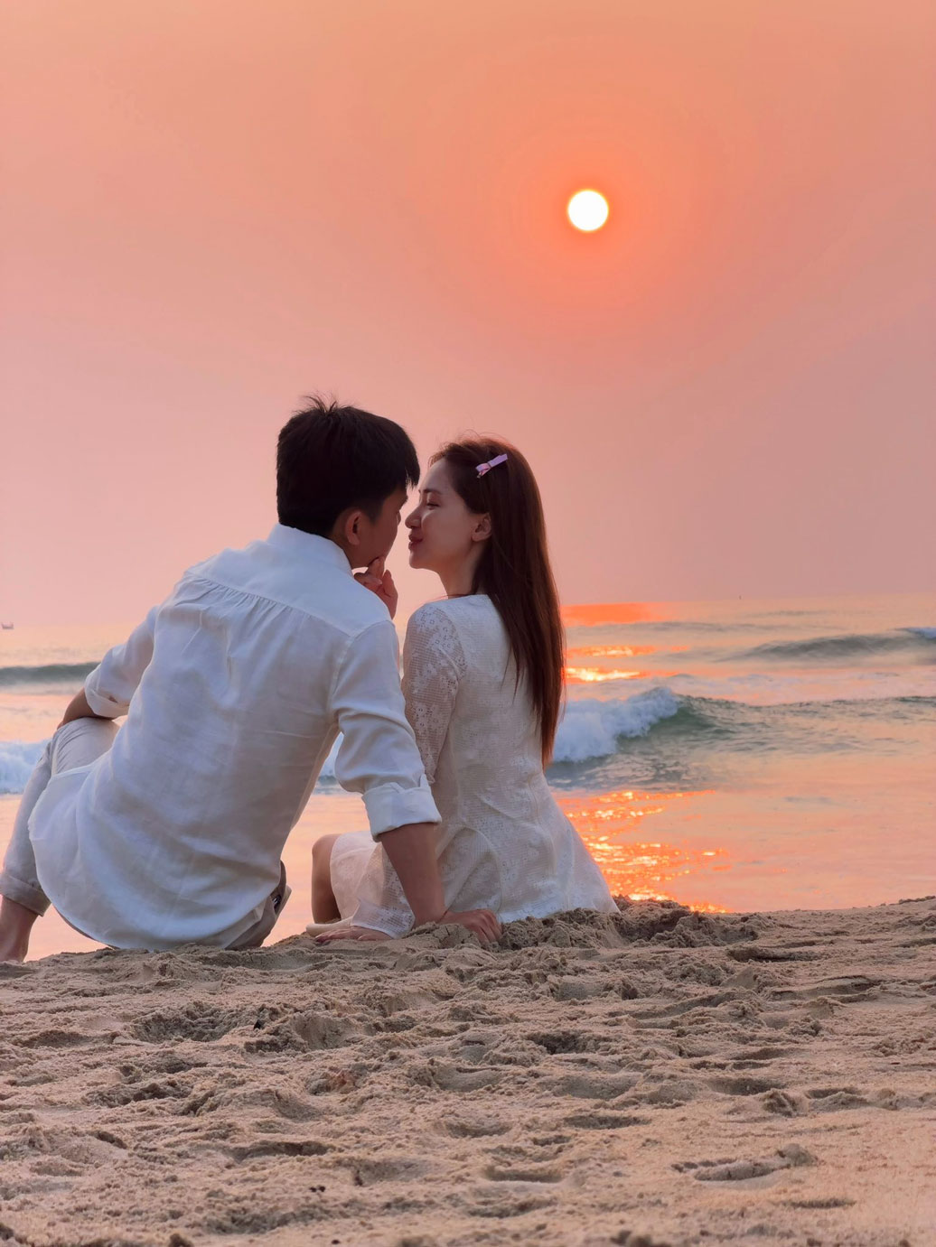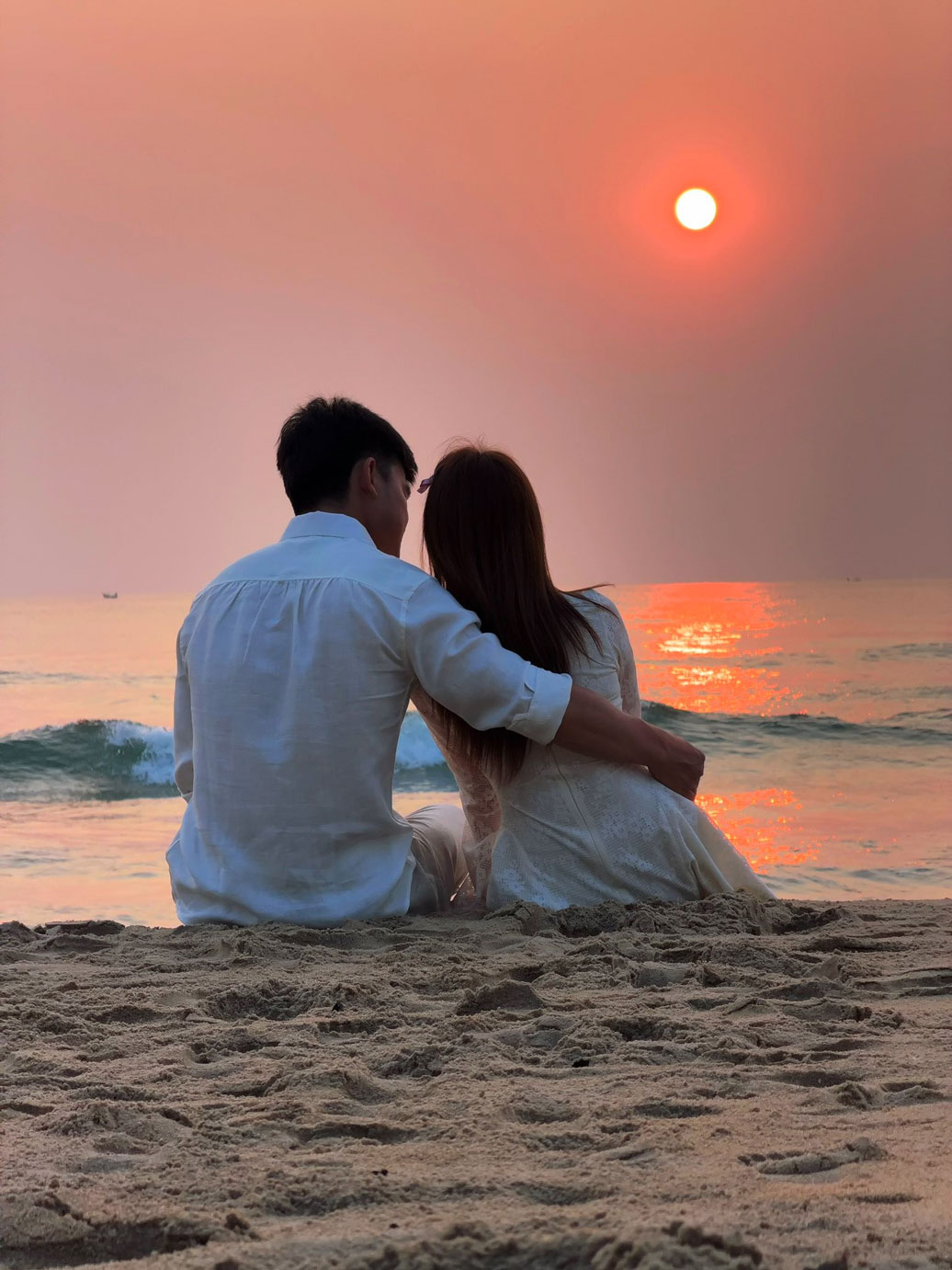 Cả hai ngắm hoàng hôn tại bãi biển ở Đà Nẵng.