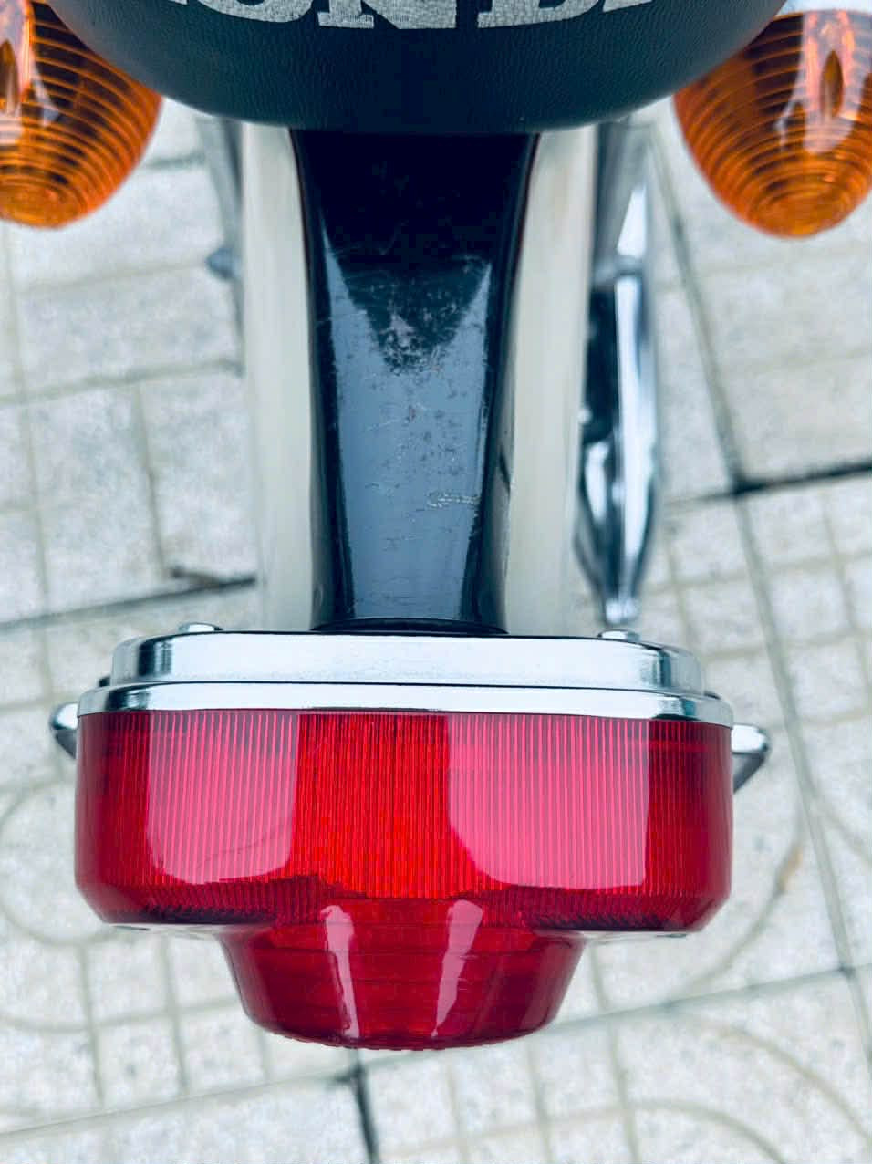 Cụm đèn pha tròn, xi-nhan màu cam cổ điển, tay lái cao và yên dài hai tầng tạo nên dáng vẻ đặc trưng của thập niên 1960. Phần động cơ lộ thiên gọn gàng, lốc máy còn sáng màu, không có dấu hiệu độ chế.