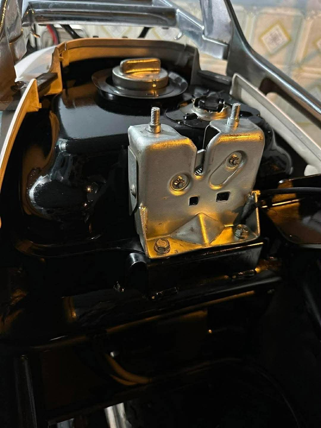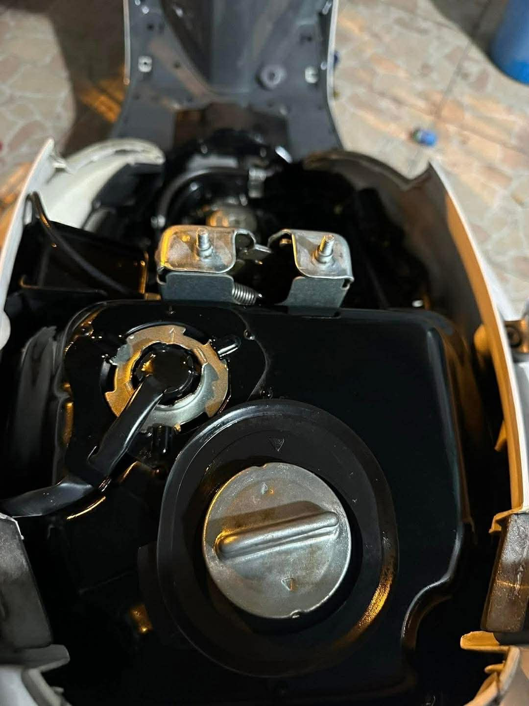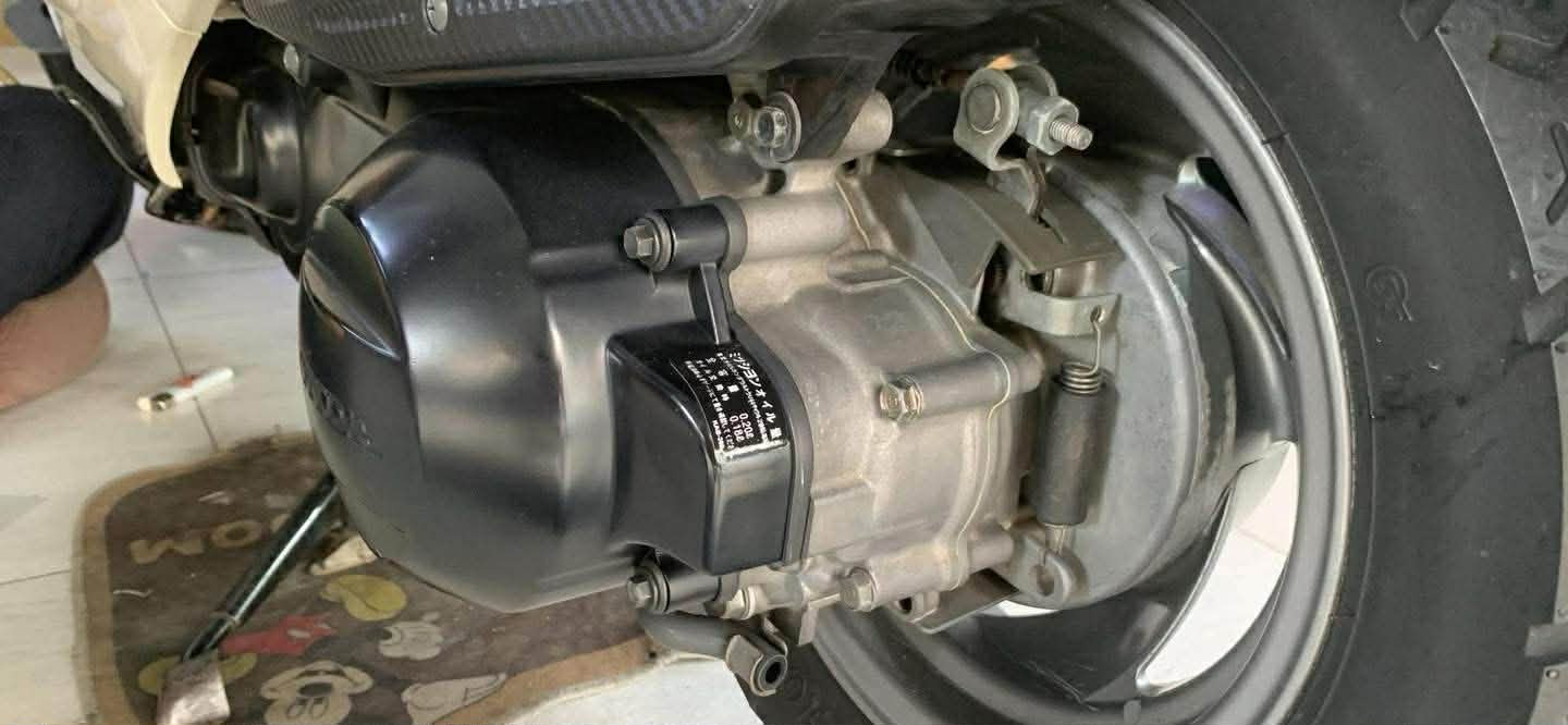 Một điểm đáng chú ý nằm ở khu vực thân giữa của xe với cụm khe gió dạng dọc, đặc trưng cho Spacy đời cuối. Theo anh Nghĩa, phiên bản này sử dụng hệ thống lòng ống hơi dạng “turbo”, trong khi các đời Spacy cũ không có chi tiết này. Bên cạnh đó, vị trí hộp IC cũng được đặt phía sau mặt nạ cổ xe, thay vì nằm dưới sàn để chân như các thế hệ trước. Ở phía sau, cụm động cơ vẫn giữ tình trạng khá nguyên bản. Quan sát phần lốc máy cho thấy các chi tiết kim loại còn sạch, chưa có dấu hiệu bị tháo mở nhiều lần. Các ốc và bu lông vẫn đồng màu, cho thấy động cơ ít bị can thiệp.