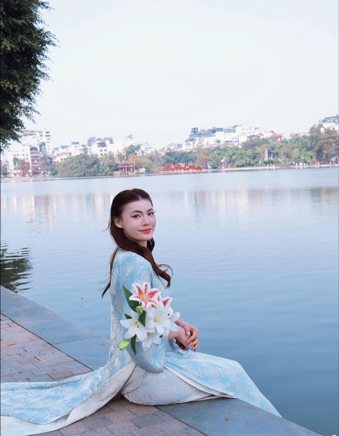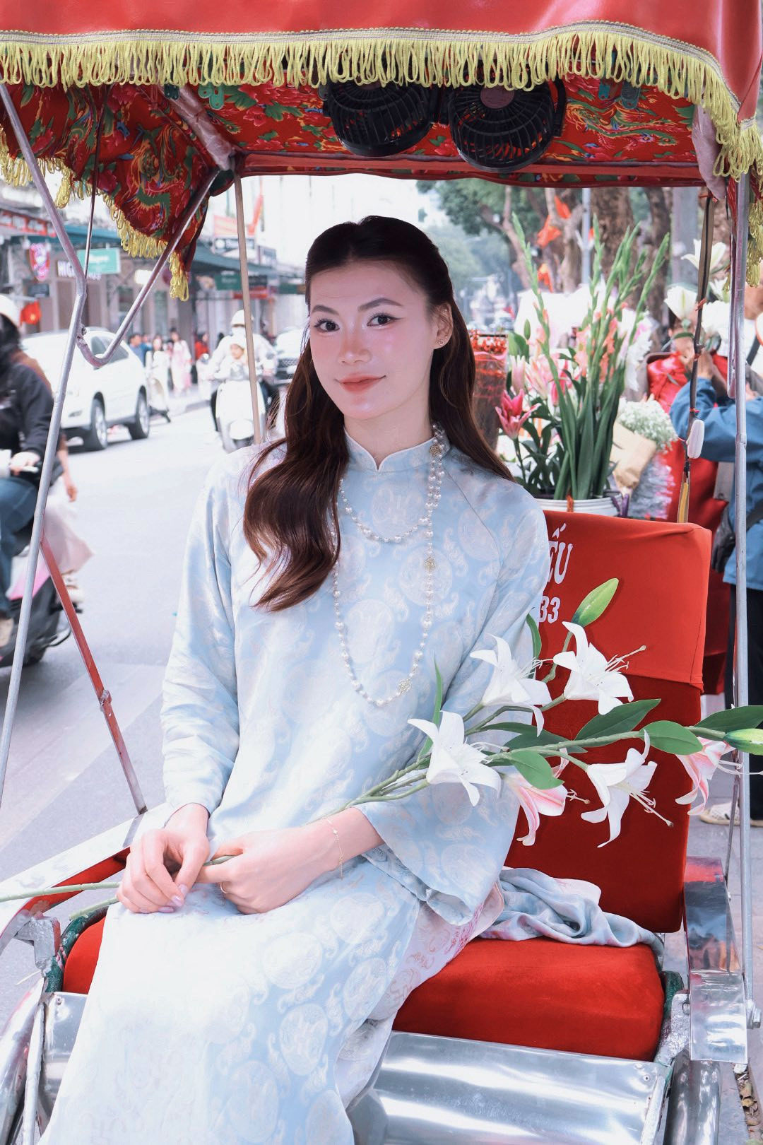 Cô nàng diện áo dài ngắm phố phường Hà Nội trong những ngày cận Tết Bính Ngọ.