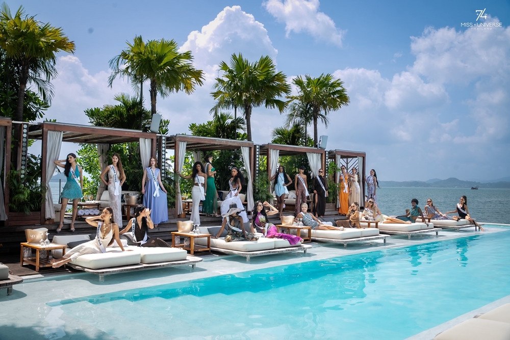 Không khí bên bãi biển sôi động với những khoảnh khắc selfie, trò chuyện và cụng ly chúc mừng giữa các người đẹp.