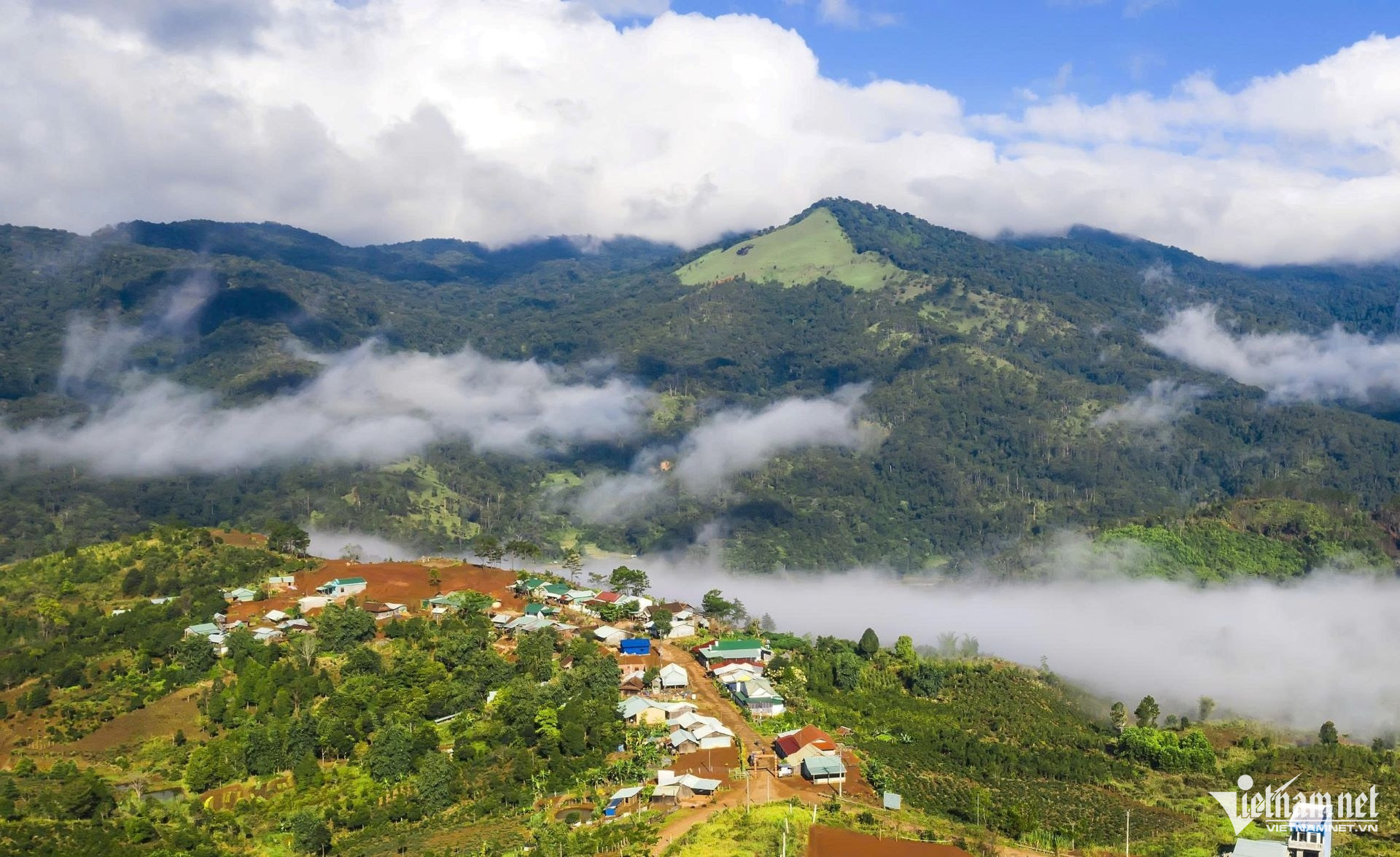 Vượt qua cung đường uốn lượn quanh những cánh rừng nguyên sinh, làng Kon Tu Ma, xã Măng Đen thấp thoáng dưới những áng mây lơ lửng và làn sương sớm mờ ảo. Một ngôi làng yên bình và giàu bản sắc của người Xơ Đăng đang chuyển mình nhờ du lịch văn hóa.