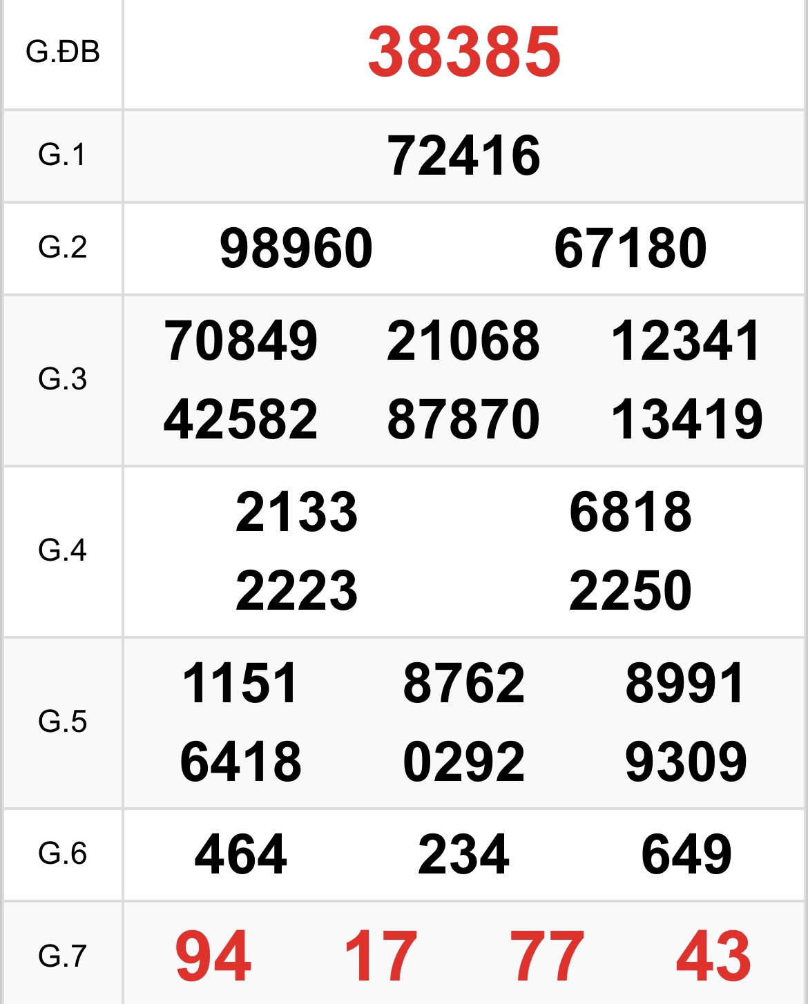 Kết quả xổ số miền Bắc ngày 7/2/2026