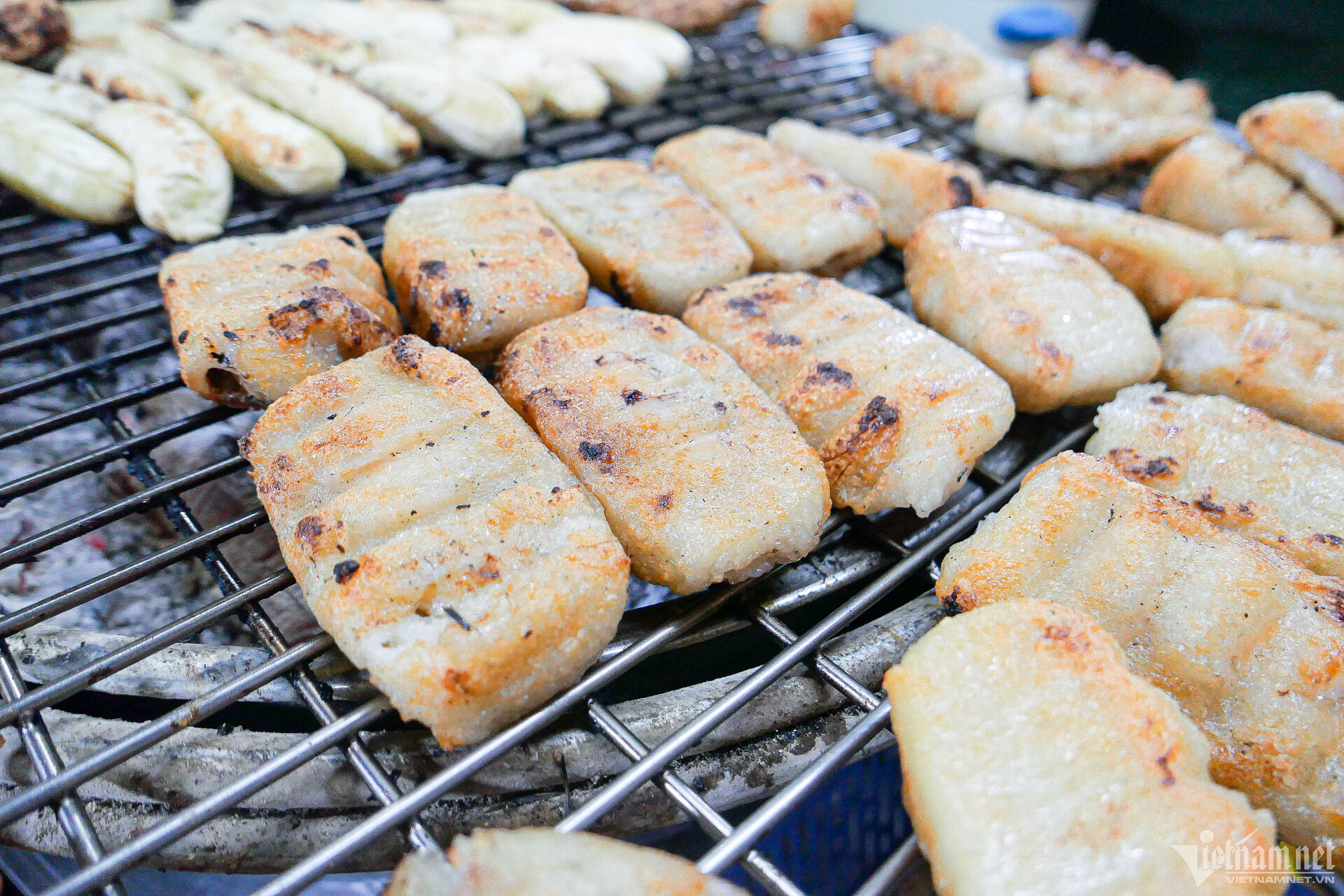Quán sử dụng than đước vì loại này khi nướng ít bị nổ, lửa cháy đều nhưng ít khói. Khi lá chuối cháy sém, vỏ xôi giòn vàng, dậy mùi thơm là hoàn thành.