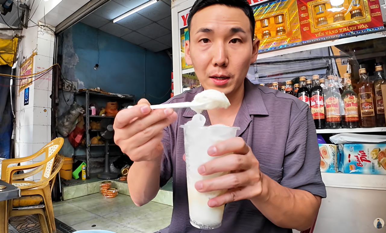 Trong đó, có một món anh thấy ấn tượng, nói “nhất định phải thử”. Đó là dừa sáp.