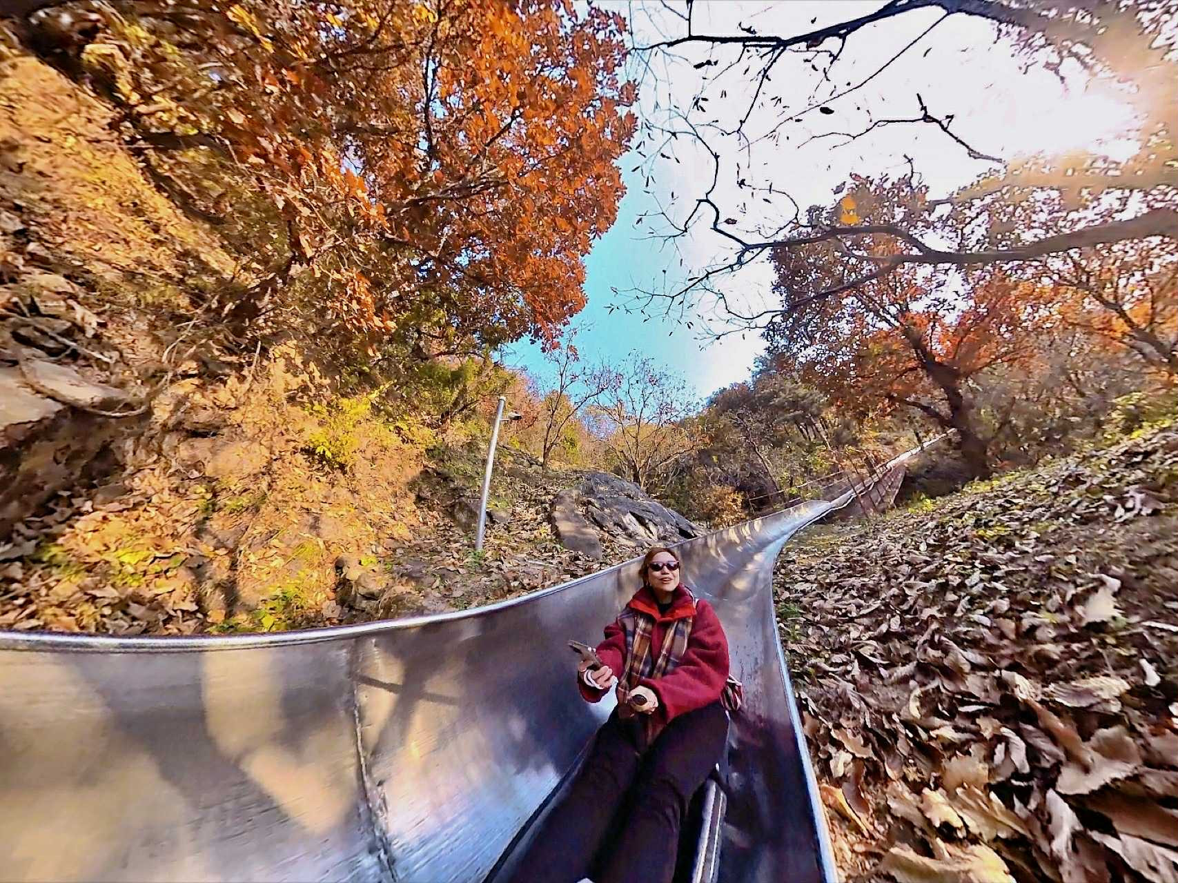"Vào mùa thu, vừa trượt máng vừa ngắm khung cảnh rừng núi tràn ngập lá vàng, lá đỏ, mình cảm thấy rất phấn khích, như đang bay.