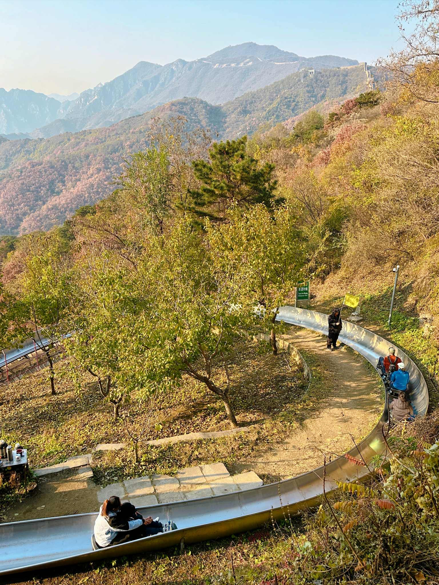 Khách Việt ghé Vạn Lý Trường Thành ngắm lá vàng lá đỏ, xuống núi bằng cách trượt máng