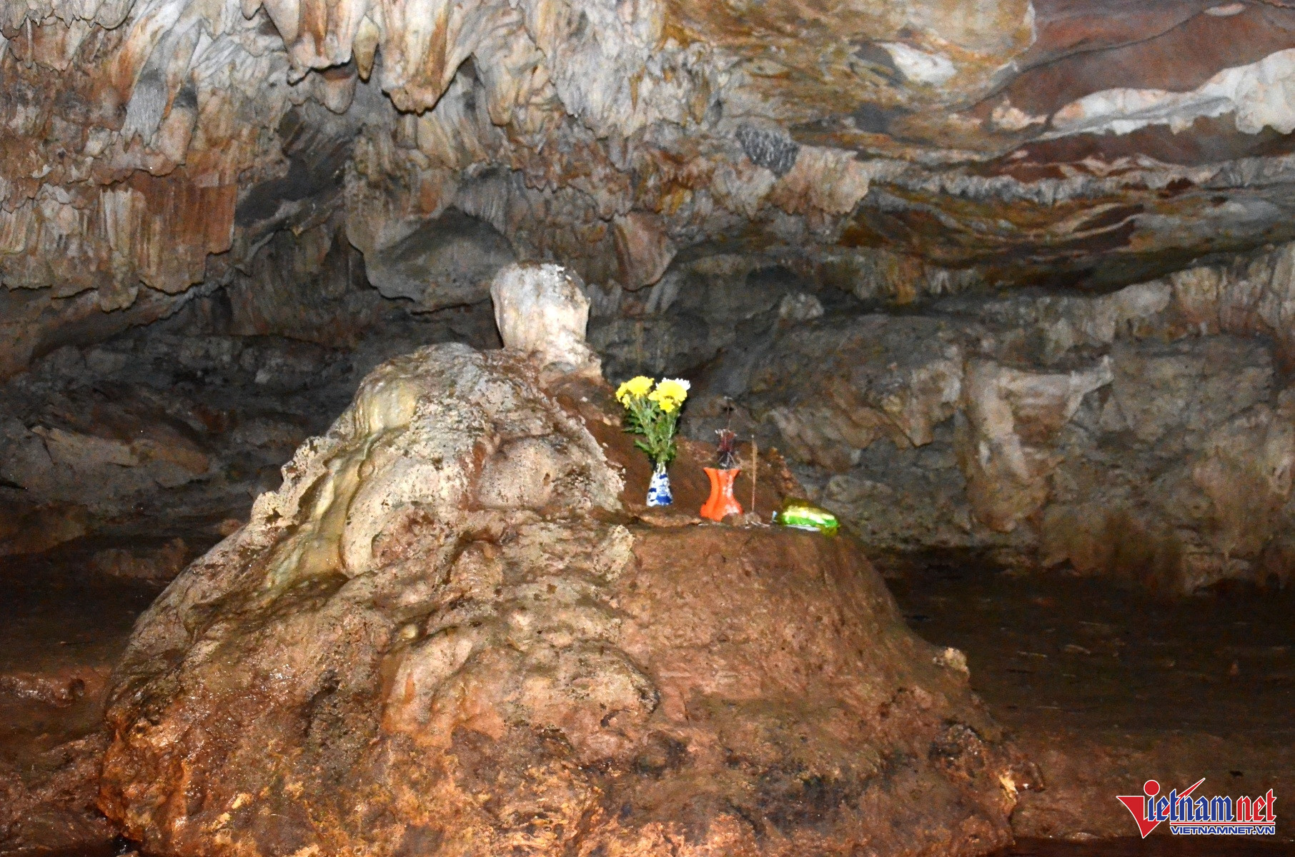 Nằm chính giữa hang là một khối đá cao 1,5m rộng 2m, có hình thù giống như một ông bụt