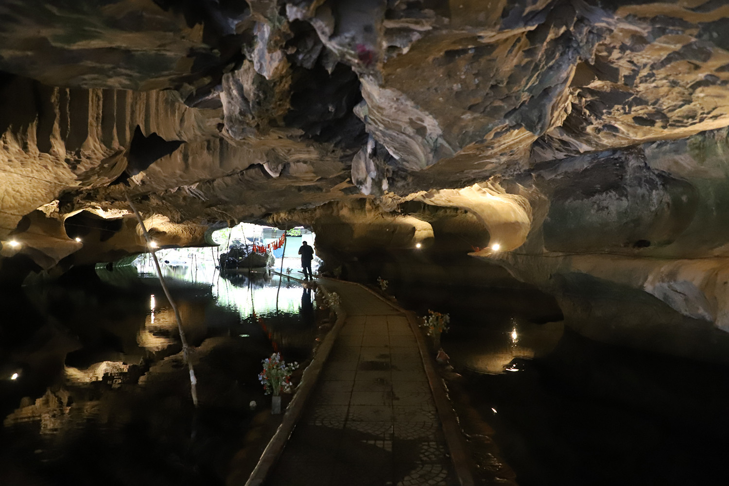 Trong lòng núi còn có suối ngầm uốn lượn, thạch nhũ đa dạng và lung linh dưới ánh sáng le lói từ các “giếng trời” – tạo nên một “thạch đạo” tuyệt tác mà thiên nhiên ban tặng.