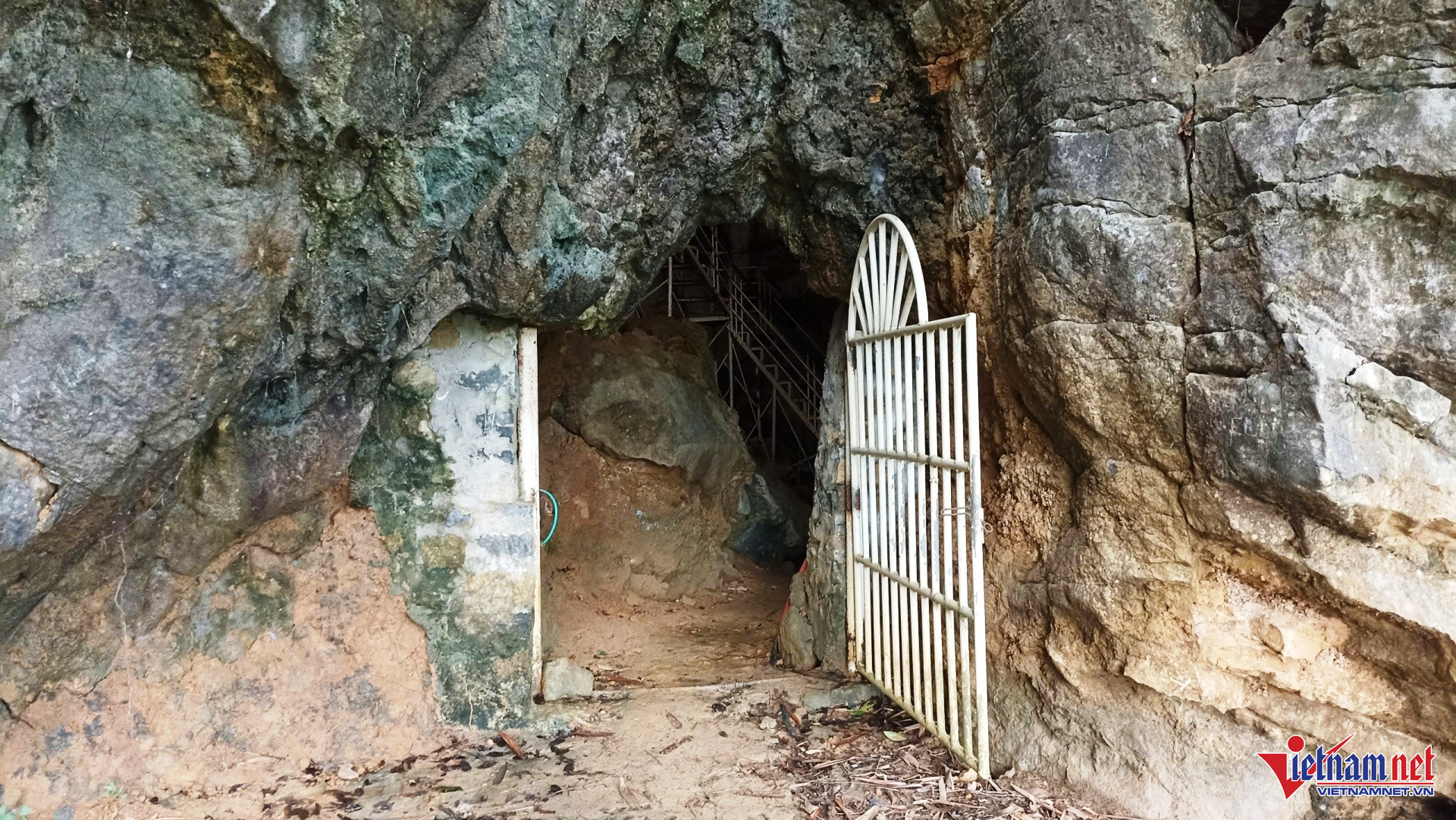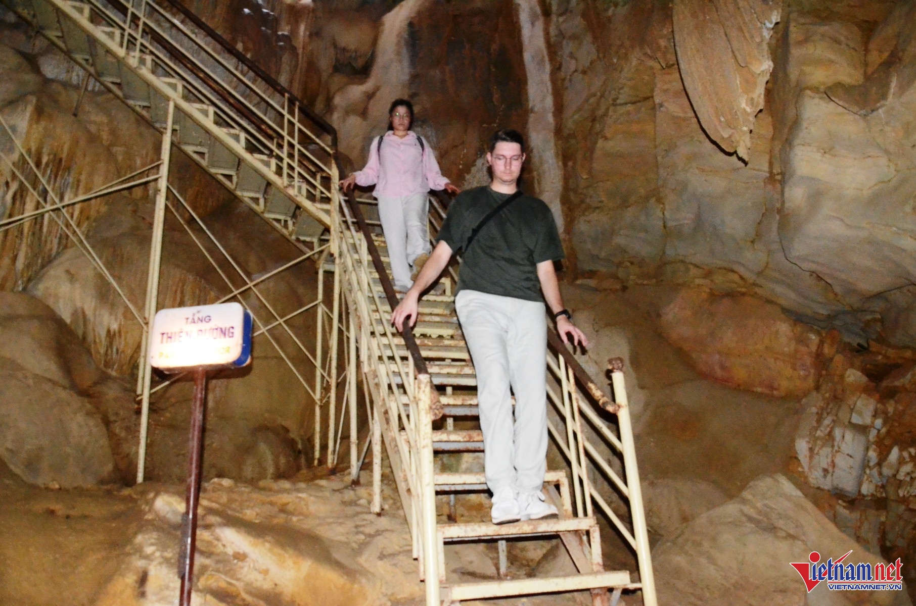 Bên trái cửa động có cầu thang bằng sắt, du khách trèo 88 bậc thang cheo leo để tới với tầng “thiên đường”
