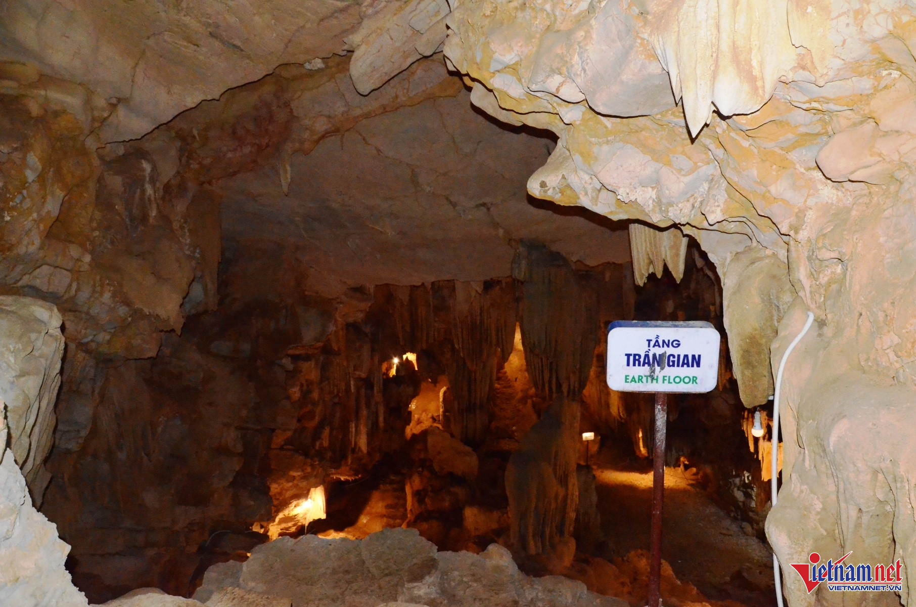 Bước qua cửa động chính là tầng “trần gian” với những khối nhũ đá phẳng như cuộc sống bình dị giữa đời thường.