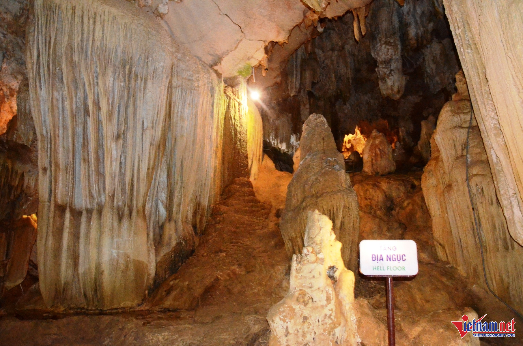 Tầng “địa ngục” có nhiều nhũ đá với những câu chuyện truyền thuyết xưa kể lại như cầu Nại Hà, ngai Diêm Vương, lưỡi đao tử thần, Tam Sinh thạch hay vạc dầu biển lửa... Thêm vào sự lạnh lẽo và bóng tối âm u bao trùm, nơi đây như tái hiện sống động khung cảnh của thế giới dưới 18 tầng địa ngục.