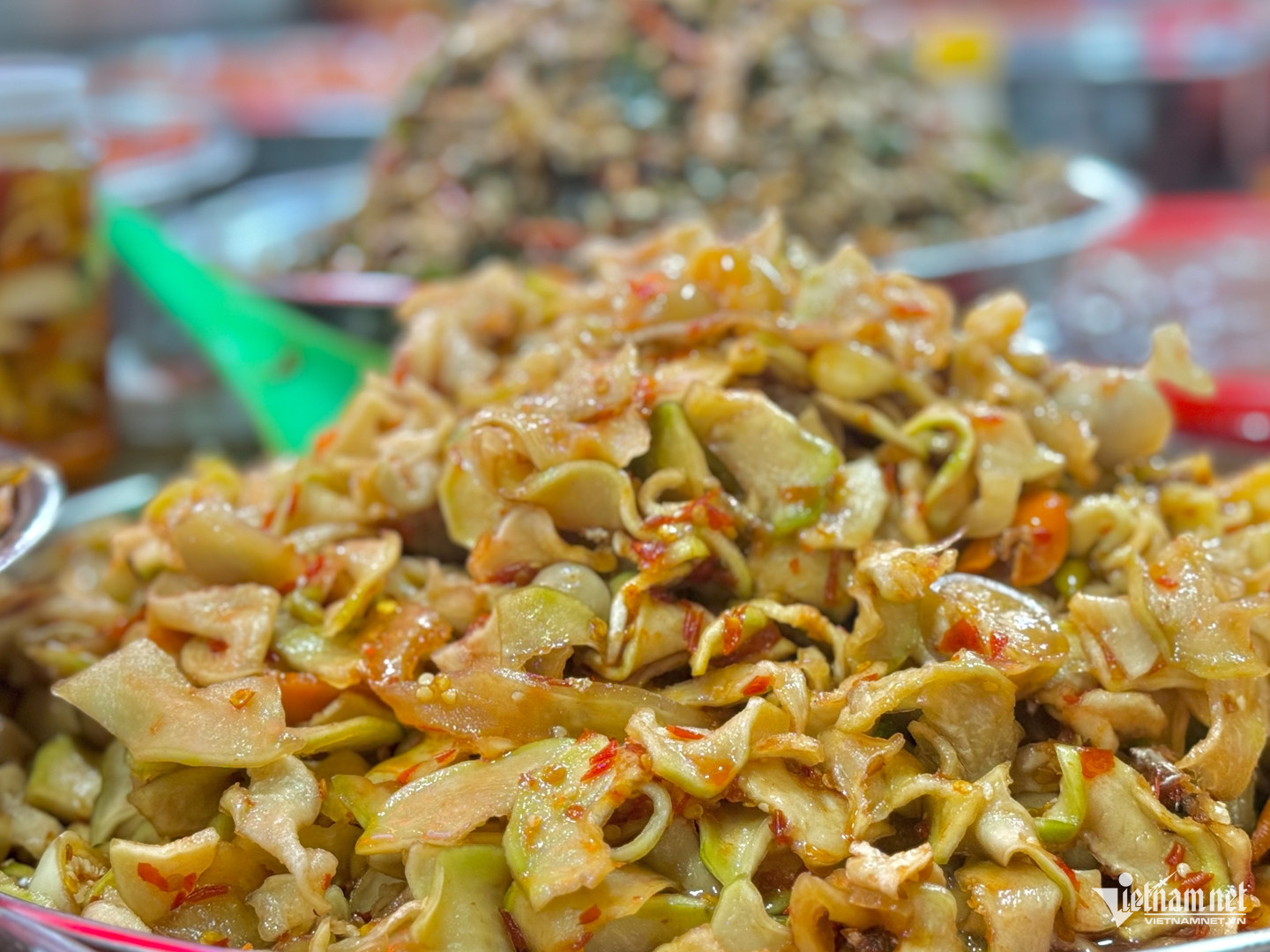 Dạo quanh khu chợ, du khách cũng dễ bị thu hút bởi các loại mắm dưa, có đủ vị chua, cay, mặn, ngọt. Mắm dưa có thể được làm từ dưa gang, cà pháo hay đu đủ xanh. Miếng dưa có độ giòn, khi nhai rôm rốp. Đây là món ăn quen thuộc trong bữa cơm của người Huế.