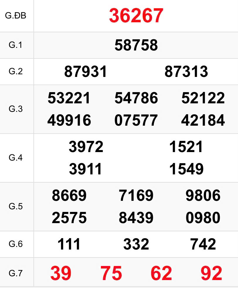 Kết quả xổ số miền Bắc ngày 7/3/2026