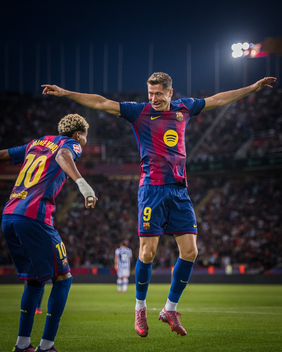 Lamine Yamal vào sân và chỉ mất 1 phút để tạo khác biệt cho Barca. Một sự kết hợp ăn ý tuyệt vời 2 thế hệ: Yamal 18 tuổi và Lewandowski 37 tuổi. Ảnh: FCB