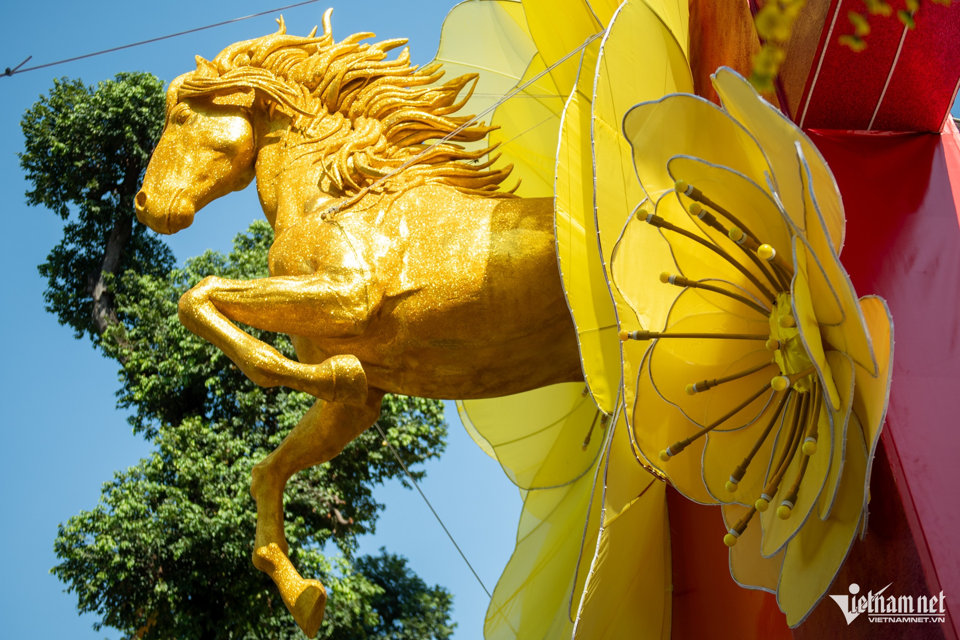 Lễ hội Tết Việt tại Nhà văn hóa Thanh niên TPHCM “gây sốt” ngày xuân với 6 linh vật ngựa vàng khổng lồ, nổi bật với chú ngựa “bay” ra từ hoa mai.
