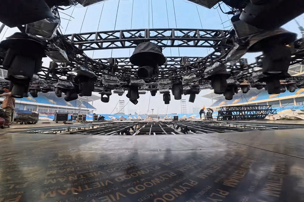 Nhiều ngày qua, đội ngũ kỹ thuật lắp đặt, tinh chỉnh hệ thống âm thanh và ánh sáng. Mỗi chi tiết từ vị trí đặt loa, góc chiếu sáng, đến hiệu ứng đồ họa đều được tính toán và kiểm tra tỉ mỉ nhằm đảm bảo sự đồng nhất và hoàn hảo trong suốt chương trình.