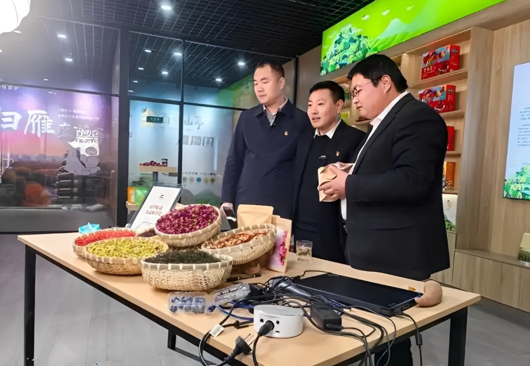 Ba bí thư làng livestream giới thiệu nông sản địa phương, từ khoai lang đến các loại trà hoa đặc sản. Ảnh: Baidu