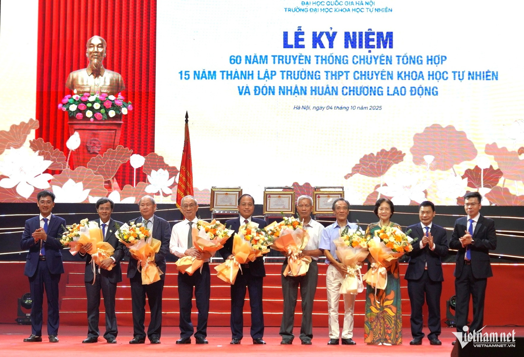Phó Thủ tướng Lê Thành Long trao Huân chương Lao động hạng Nhì cho Trường THPT Chuyên Khoa học Tự nhiên; Huân chương Lao động hạng Nhất cho Bộ môn Chuyên Vật lý và Huân chương Lao động hạng Ba cho Bộ môn Chuyên Toán.