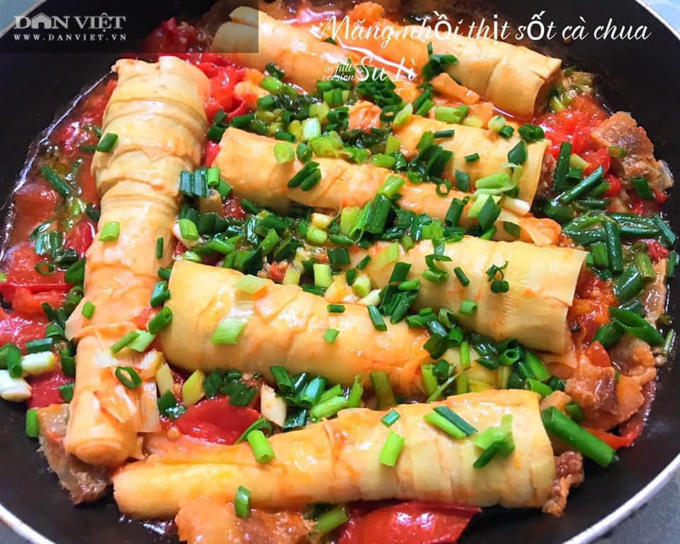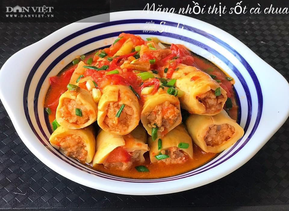 Ngoài canh măng hay măng xào thì các bà nội trợ có thể biến tấu một chút là có ngay món măng nhồi thịt sốt cà chua vô cùng lạ miệng, hấp dẫn, mùi vị và hình thức đều bắt mắt.