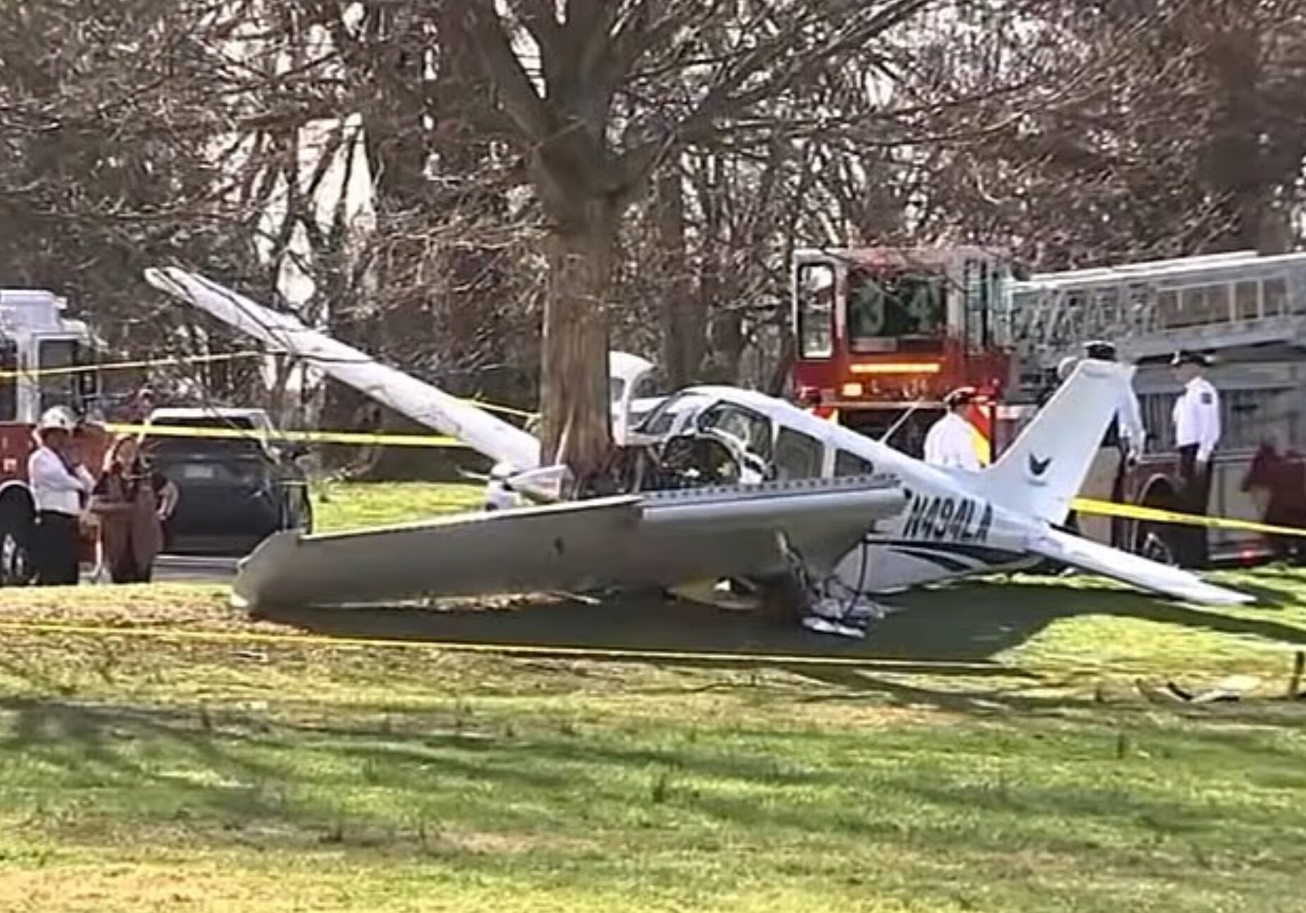MỸ - Chiếc máy bay huấn luyện mất động cơ, đâm vào cây trong công viên nhưng may mắn không gây thiệt hại về người.