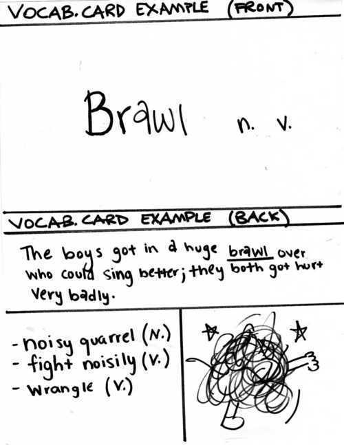 Đây là một ví dụ của flashcard. Mặt trước: từ vựng và loại từ. Mặt sau: nghĩa, ví dụ, và hình vẽ