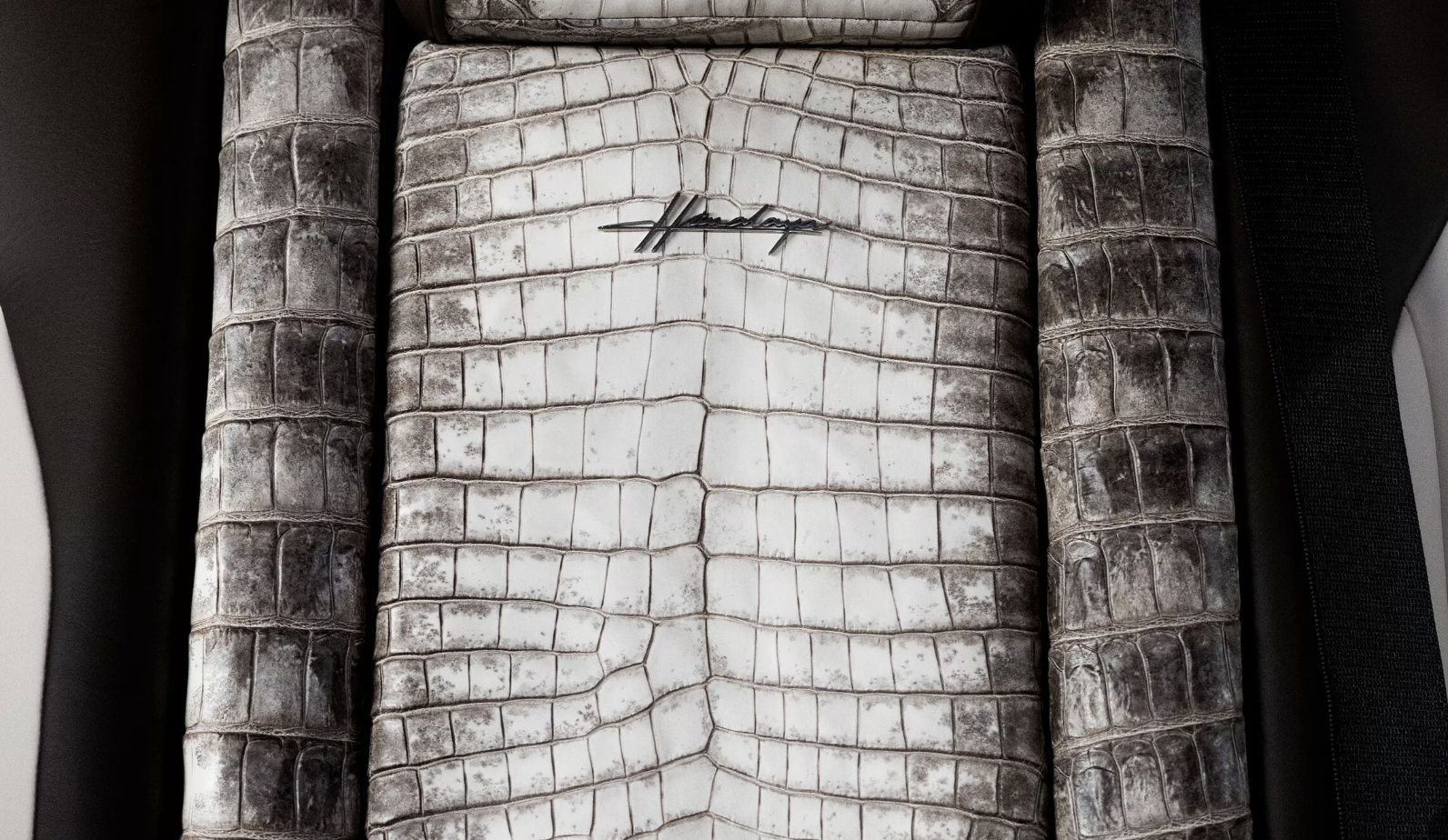 Không kém phần dị biệt, nội thất sử dụng da cá sấu Himalaya, loại vật liệu hiếm – vốn nổi tiếng trên túi Birkin của Hermès với giá có thể lên đến hàng trăm nghìn USD. Chất liệu này được bọc trên ghế trước và ghế giữa phía sau, tạo nên không gian gần như “độc bản”. Phần còn lại kết hợp da nâu – trắng và Alcantara phủ trần, hoàn thiện theo phong cách thủ công.