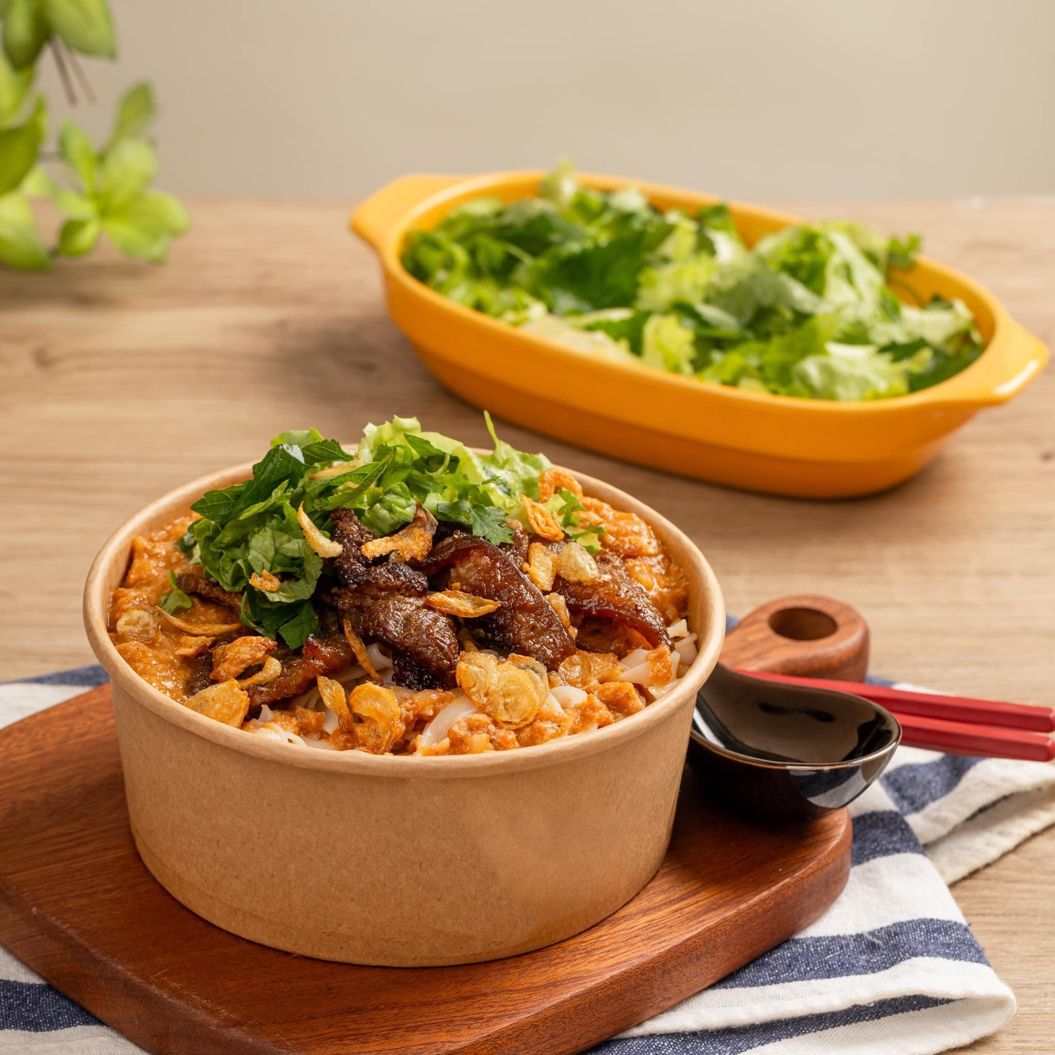 Món ăn này là sự kết hợp giữa bánh phở tươi (hoặc mì chũ) với phần xốt màu nâu cam làm từ cua đồng, thịt băm và cà chua chín mọng.