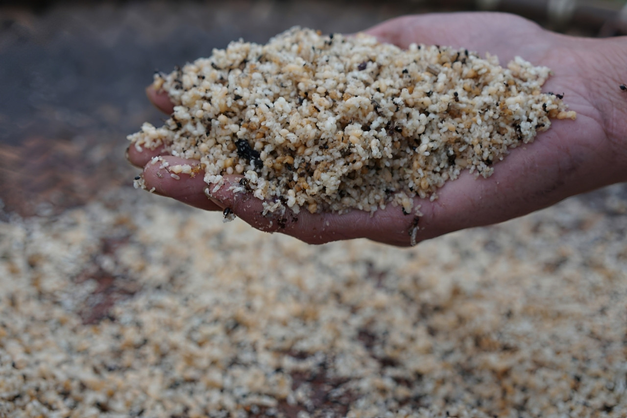 Quá trình chế biến món bánh này đòi hỏi sự tỉ mỉ, kỳ công, nhất là khâu làm sạch trứng kiến. Ảnh: Hòa Nguyễn