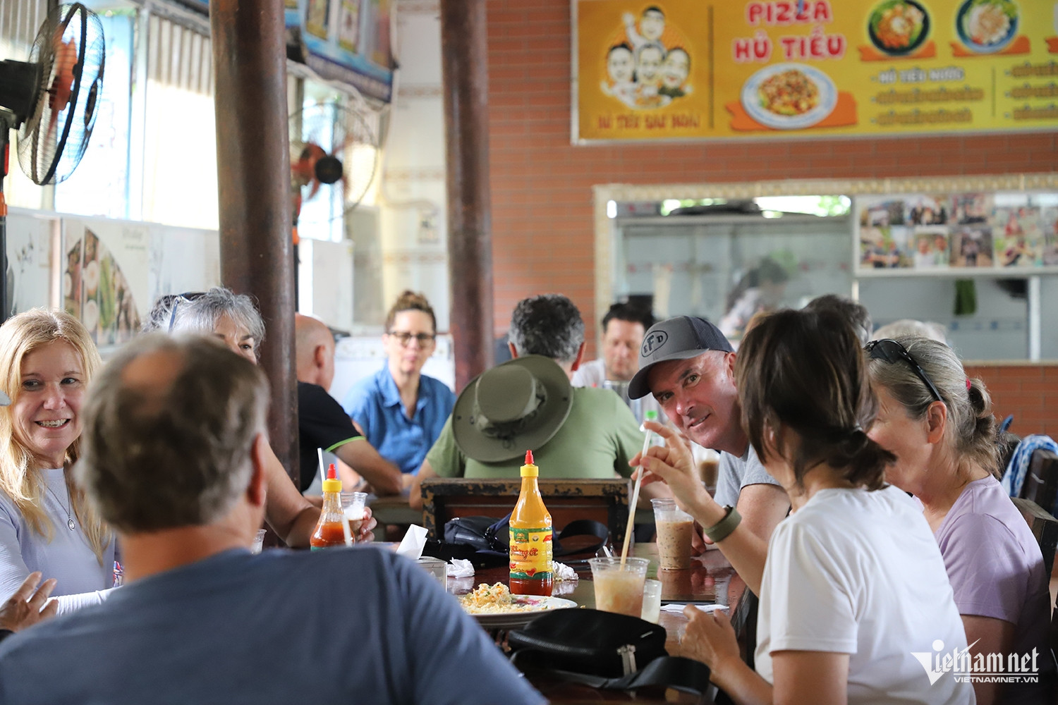 Đoàn du khách Canada thích thú, tấm tắc khen ngon khi thưởng thức món pizza hủ tiếu