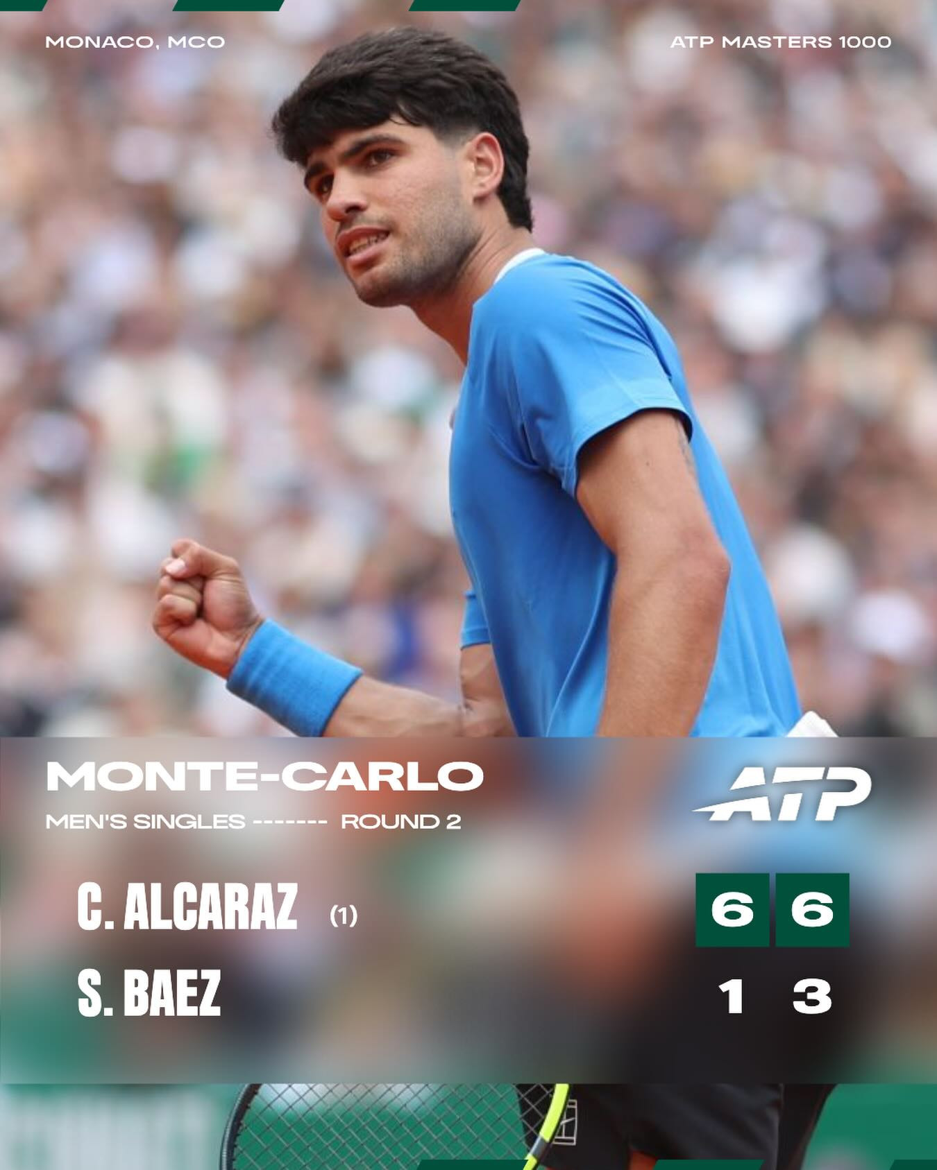 Carlos Alcaraz đã có màn trình diễn ấn tượng khi đánh bại Sebastian Baez với tỷ số 6-1, 6-3 chỉ sau 70 phút tại Monte Carlo. Chiến thắng này đến ngay sau khi Jannik Sinner cũng giành thắng lợi dễ dàng, tạo nên màn cạnh tranh hấp dẫn giữa hai tay vợt hàng đầu.