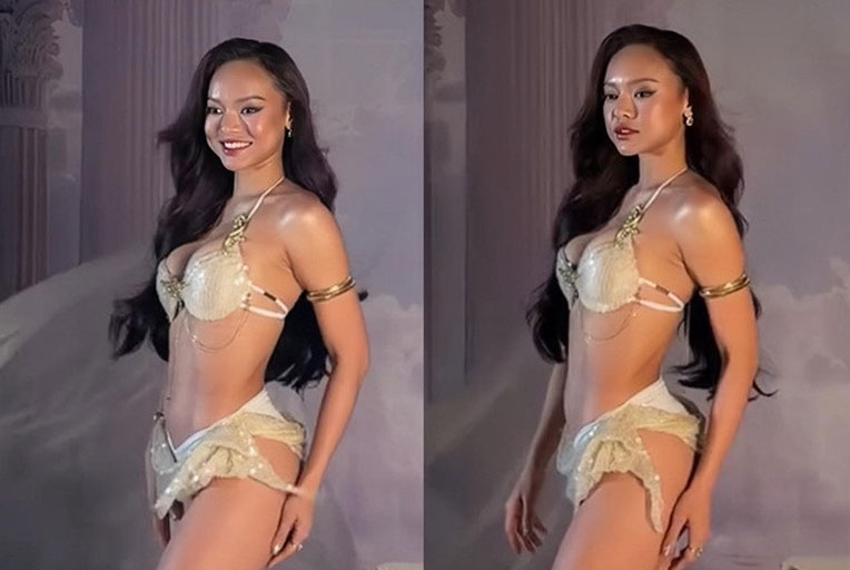 Mai Ngô khoe clip hậu trường buổi shooting bikini ở Miss Charm gây sốt.