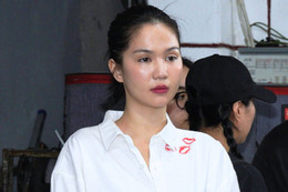 Trong buổi khai máy dự án điện ảnh mới của đạo diễn "Ma da" Nguyễn Hữu Hoàng, người đẹp Ngọc Trinh - đảm nhận vai nữ chính - gây chú ý với vẻ ngoài phờ phạc.